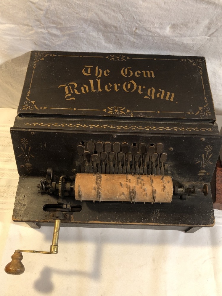19th Century 1887 "The Gem Roller Organ" Crank Organ With 4 Music Box Cylinders