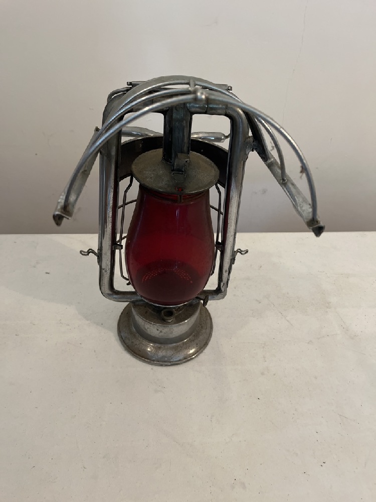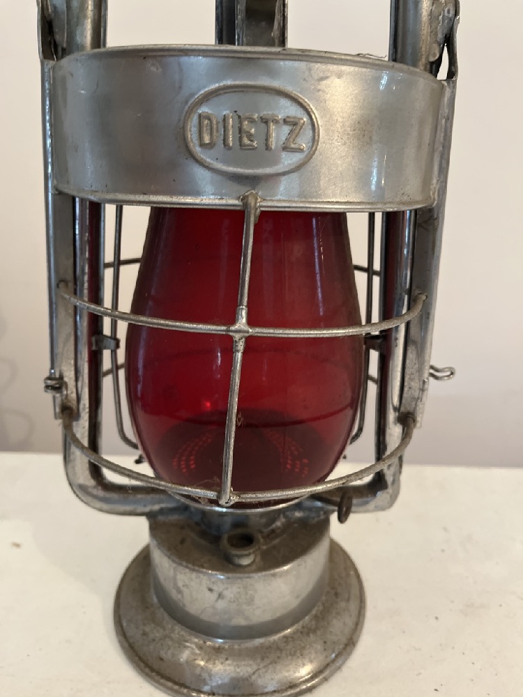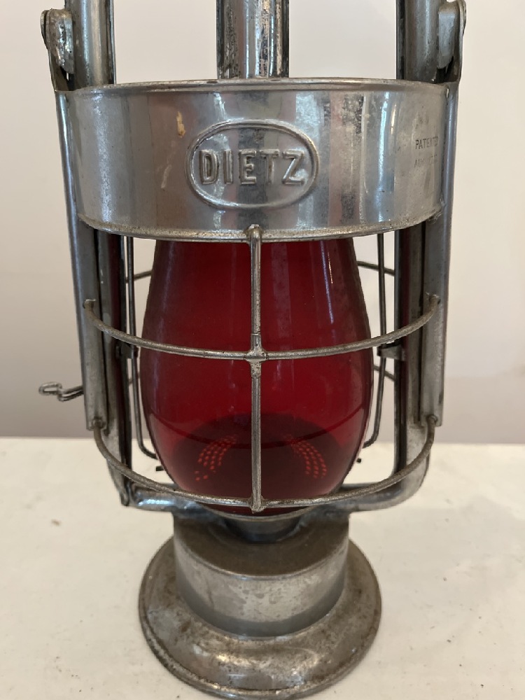 Vtg Brass Dietz King Fire Dept Lantern with Red Globe- 15” T