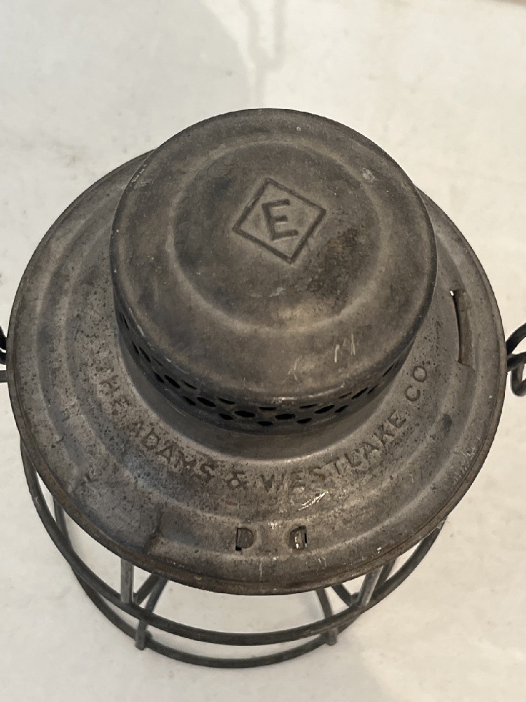 Erie Diamond Logo Marked Railroad Lantern - The Adam’s & West Lake Co. - Clear Globe ~ 9 1/2” Tall