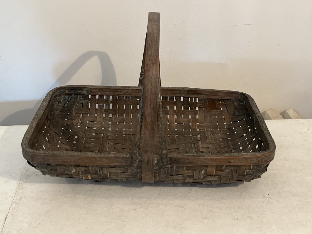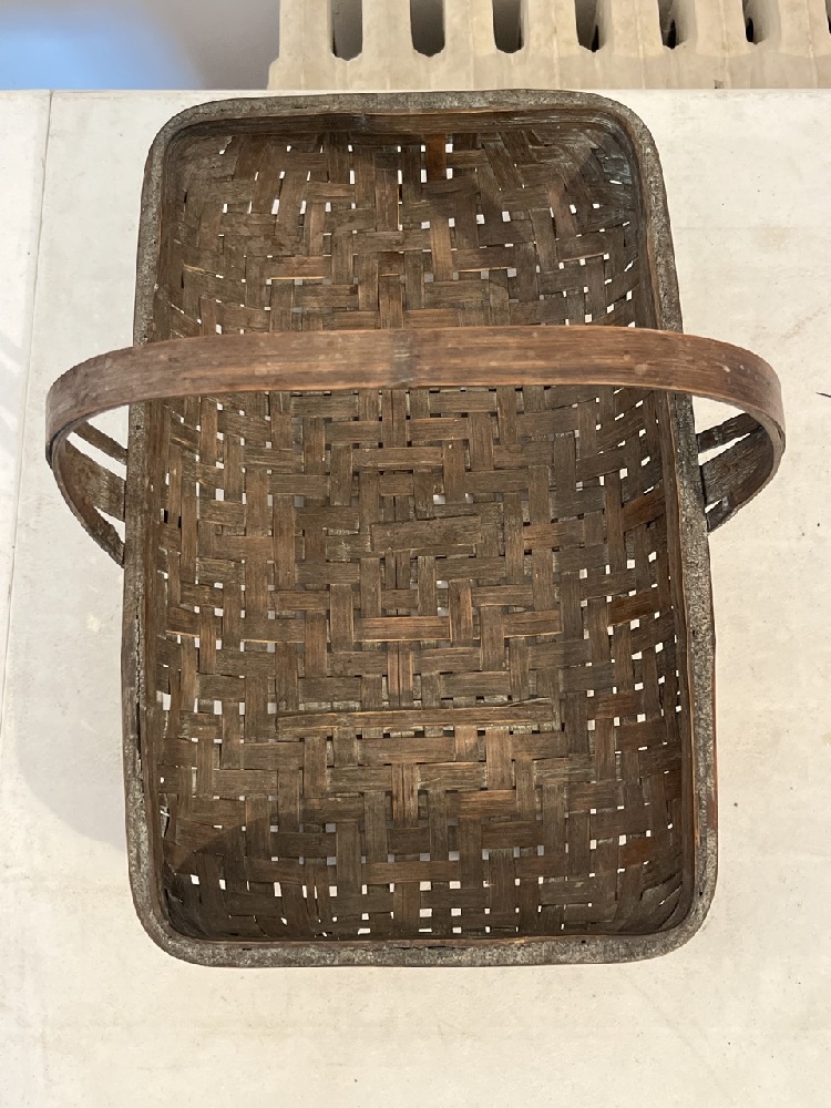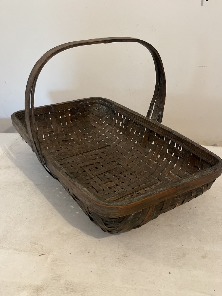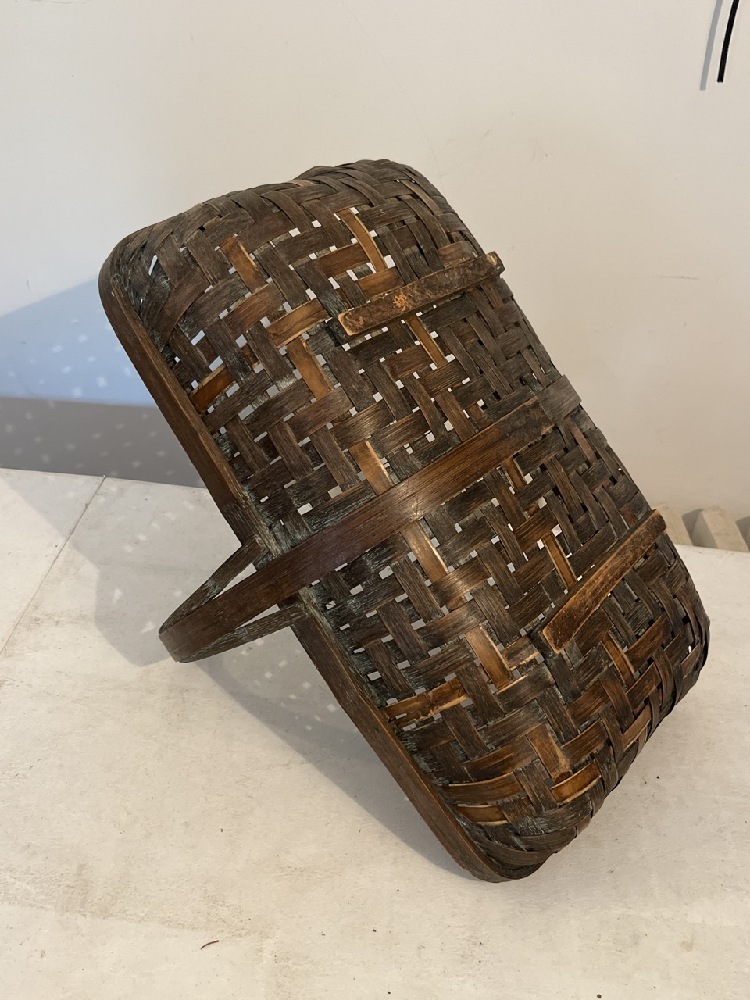 Antique Oak Rush Woven Gathering Basket- 19” L x 12” W x 12” T