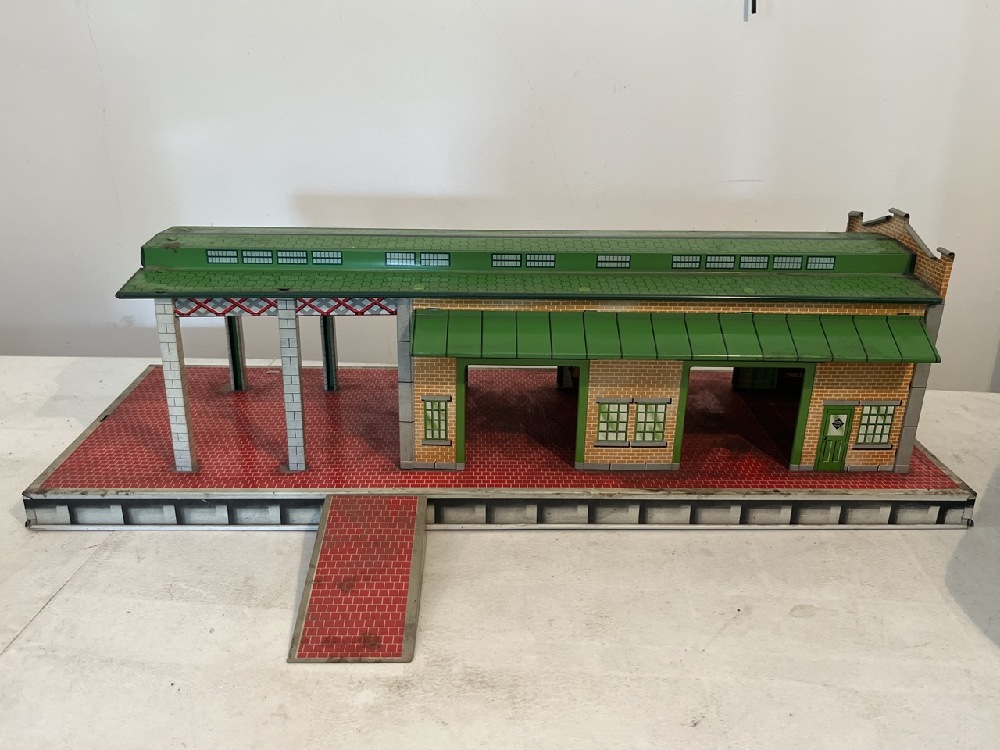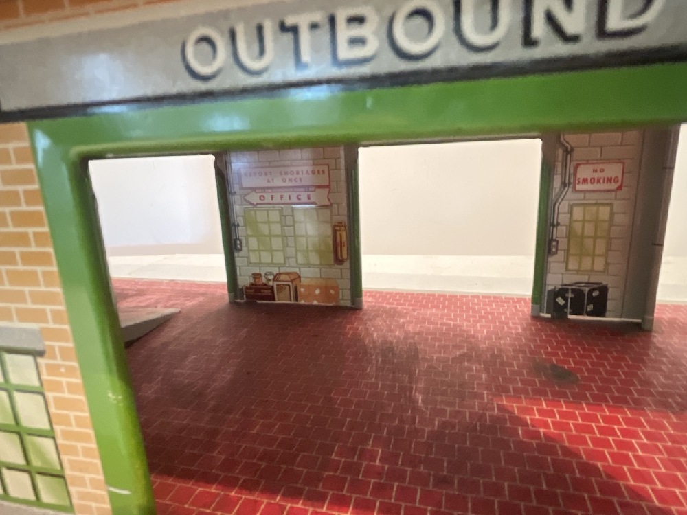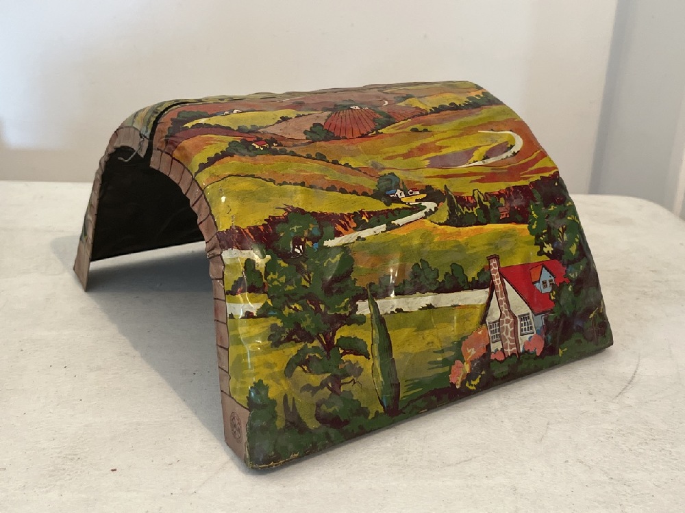 1950’s Marx Tin Litho Freight Station ( 29” Long x 11” Wide x 9” Tall) and Tunnel (9 1/2” Wide x 7” Tall)