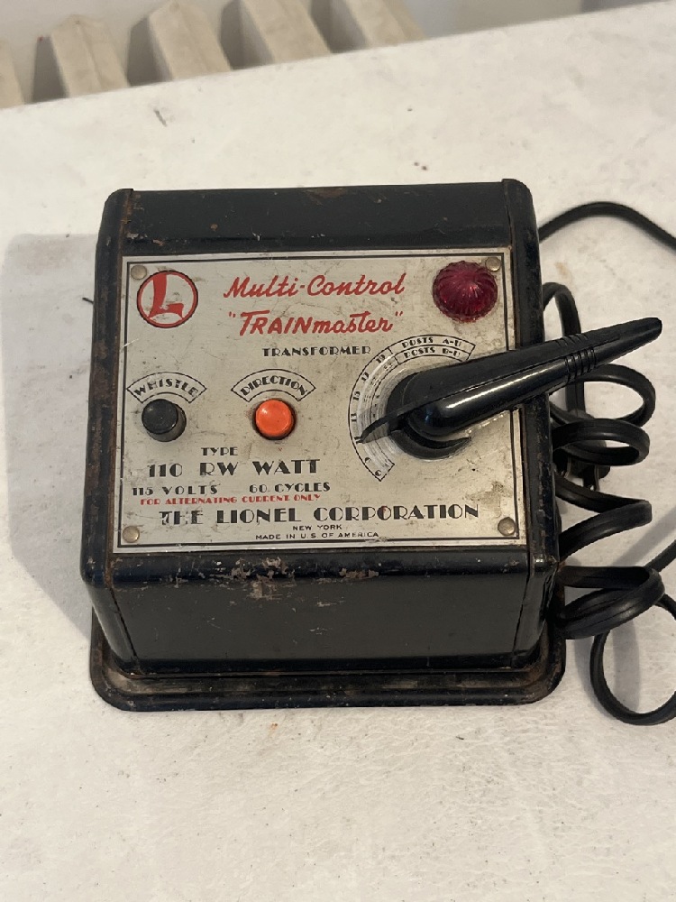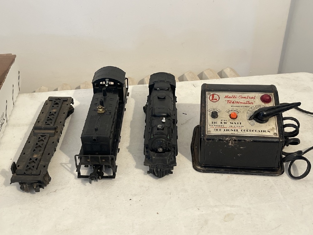 Vtg. Lionel Trains ~ Steam Engine 2037, Erie 610 and Flat Car 6424 and Multi Control “Trainmaster” Transformer 110 RW Watt