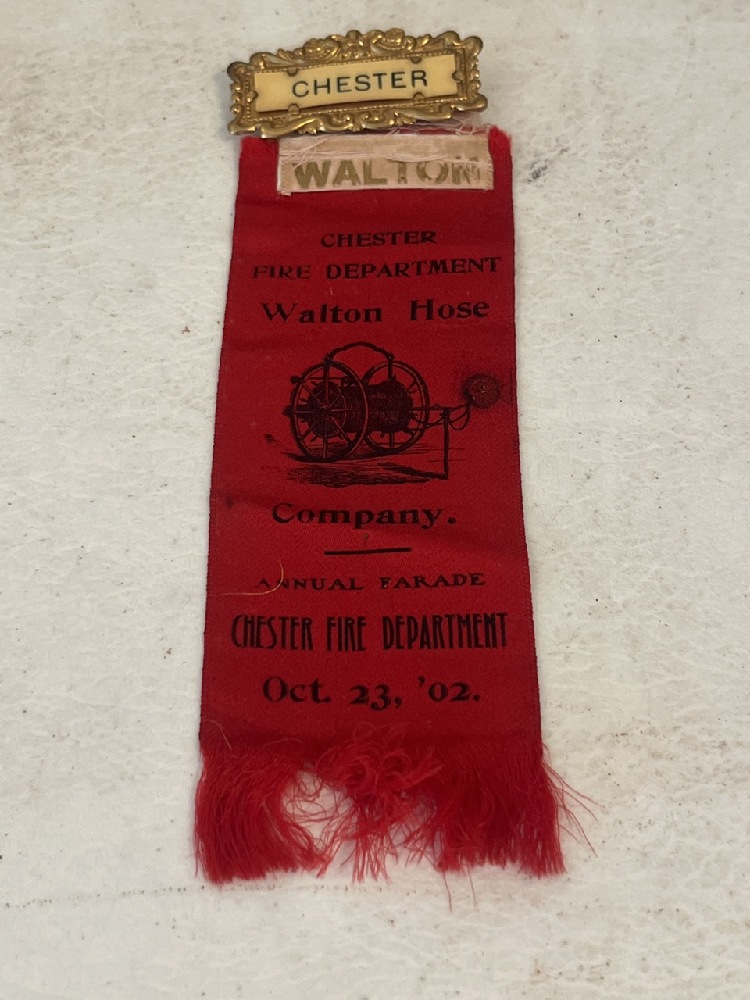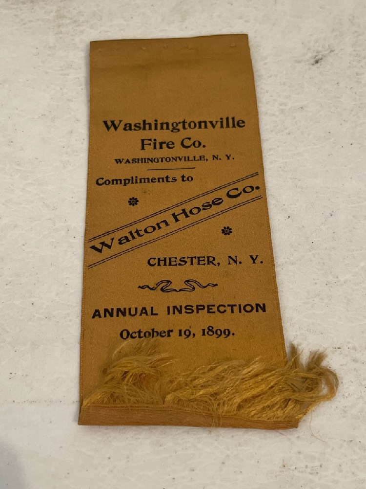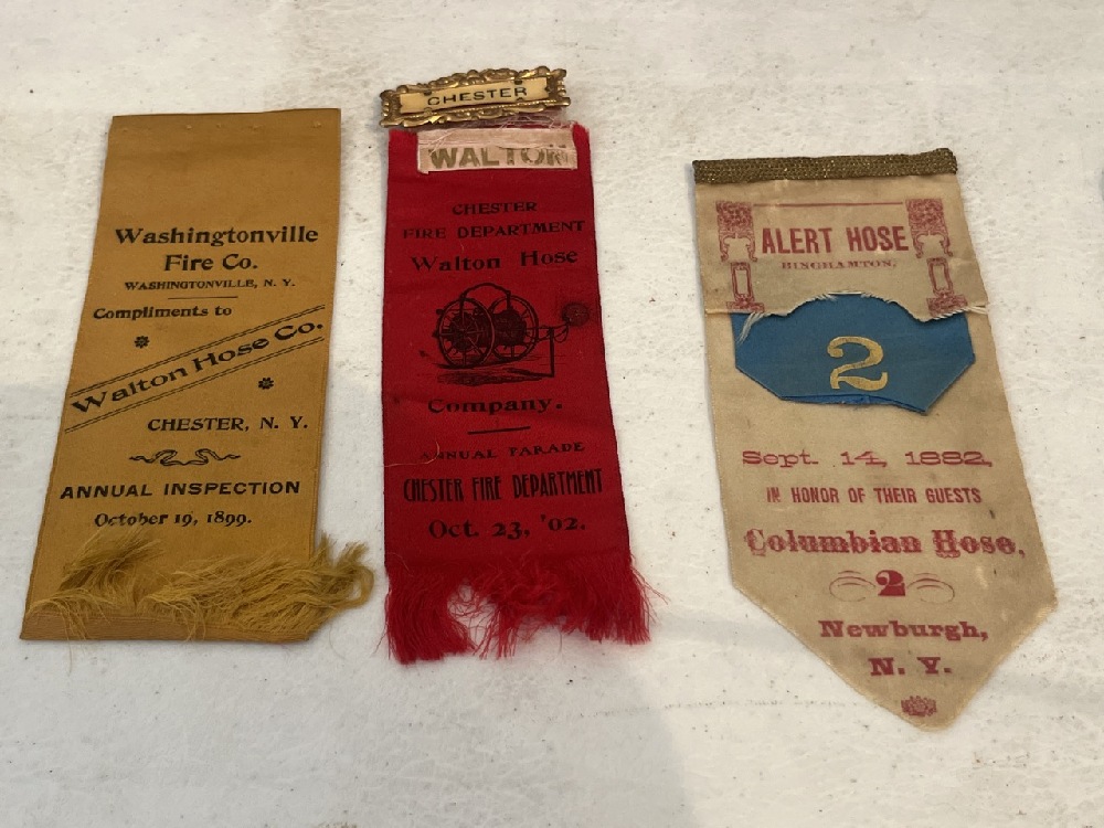 Fireman Ribbons ~ Sept. 14, 1882 Columbian Hose “2” Newburgh N.Y. , Oct. 19 1899 Washingtonville Fire Co. Walton Hose Co. Chester NY Annual Inspection, Oct. 23, 02 Chester Walton Hose