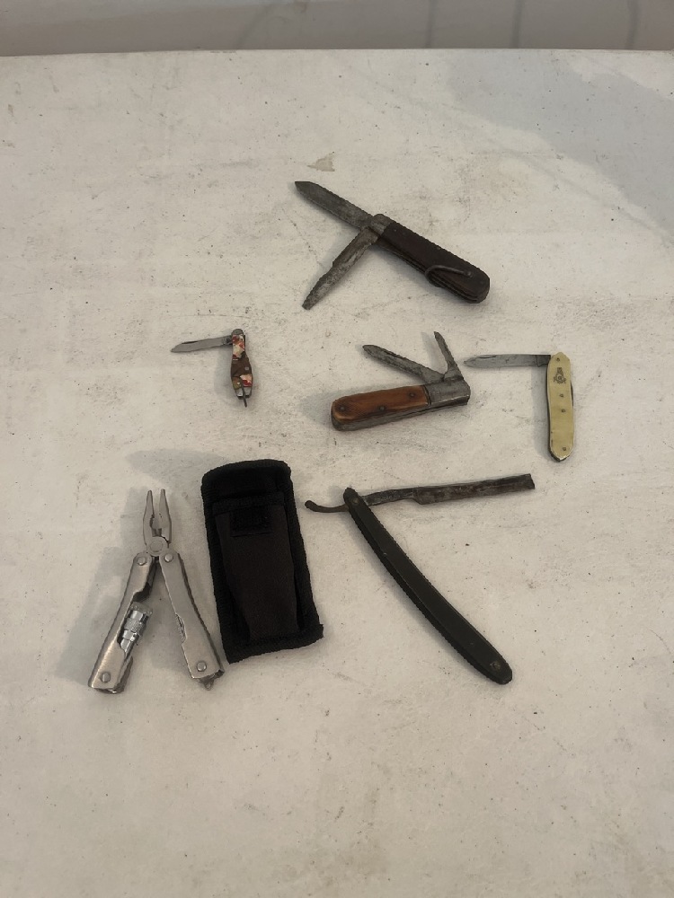 Vtg Knives including Schrade, Masonic, Celluloid, Electro Straight Razor, Multi Knife