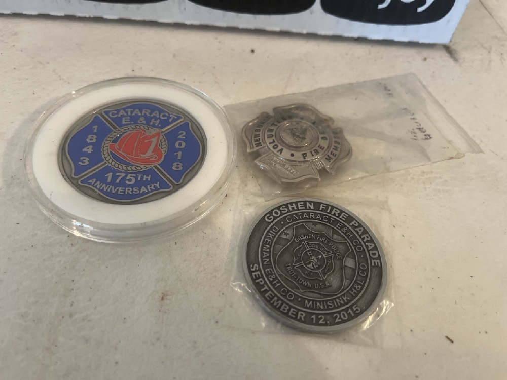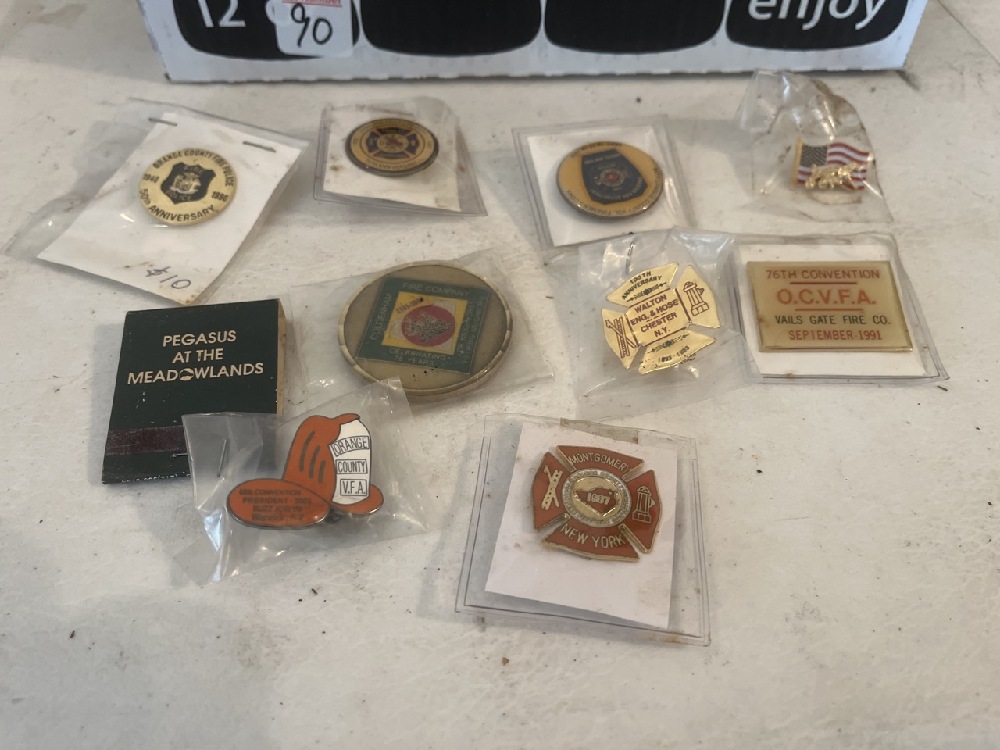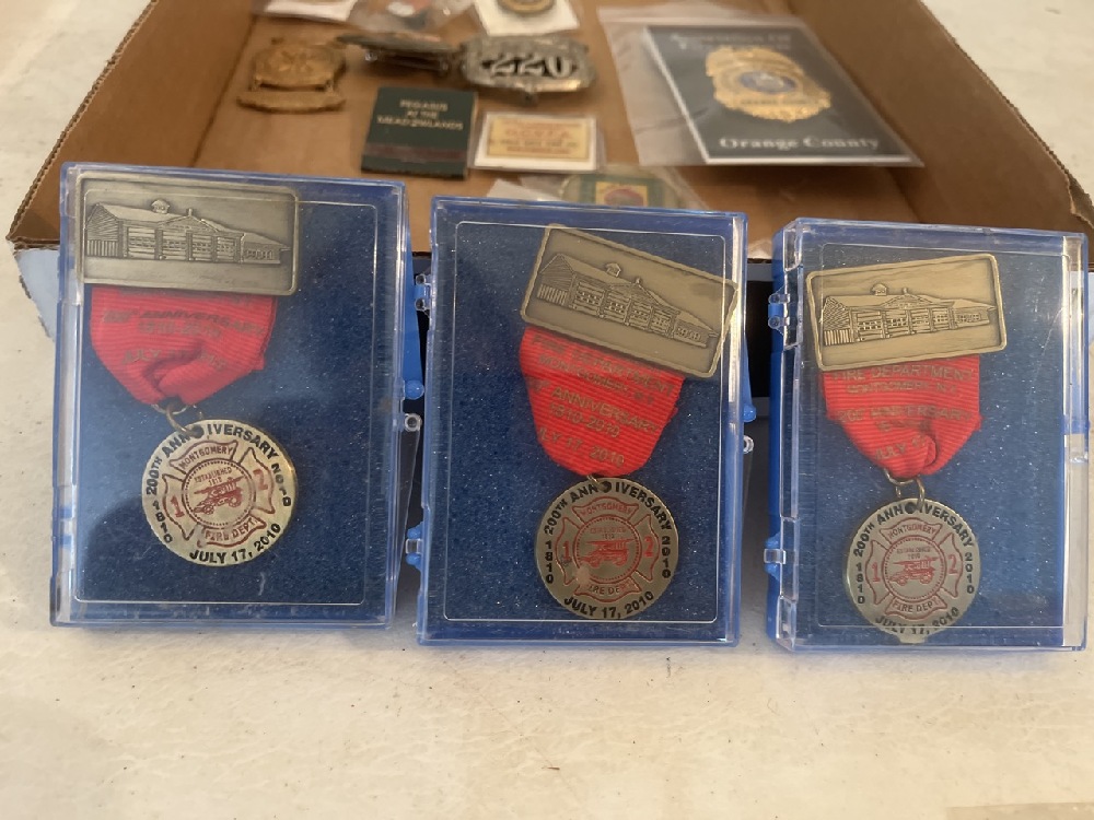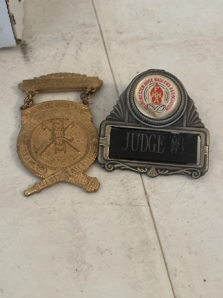 Firemen’s Badges, & Pins Mostly Local Chester, NY, Montgomery, NY, Warwick, NY & Orange County. NY
