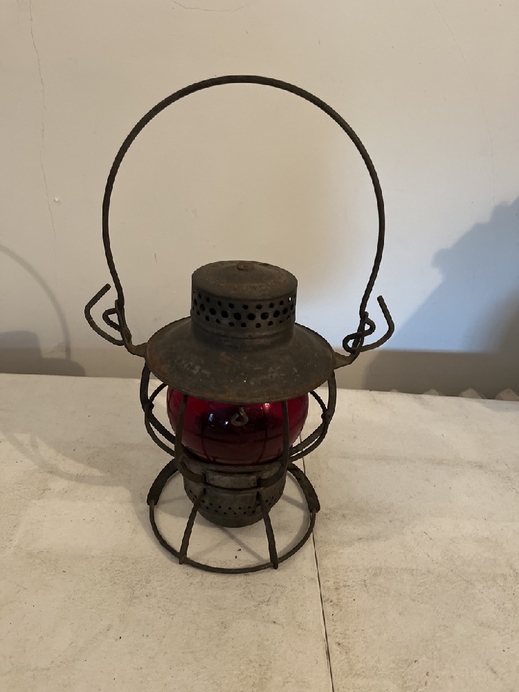 Vtg Dressel N.Y.C.S RR Lantern w/ Red Globe- 9.5” T