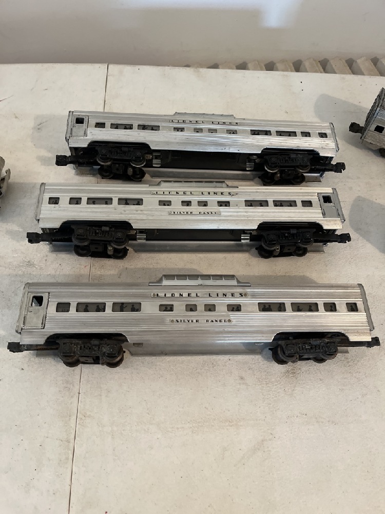 Vtg Lionel Silver Train Cars- 2531 Silver Dawn, 3) 2532’s Silver Range, 2533 Silver Cloud, 2534 Silver Bluff