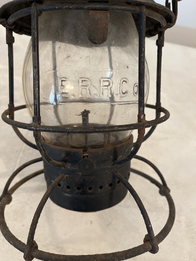 Vtg Erie RR Armspear Mfg. Co.Lantern with E.R.R.Co. Globe- 10 1/2” T
