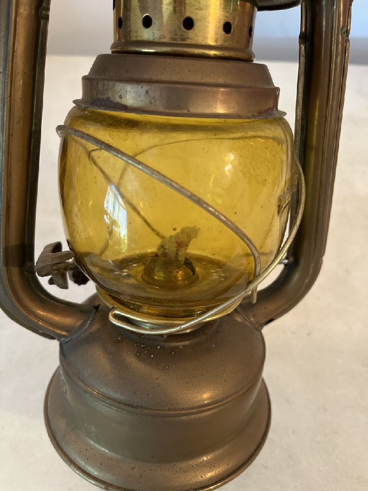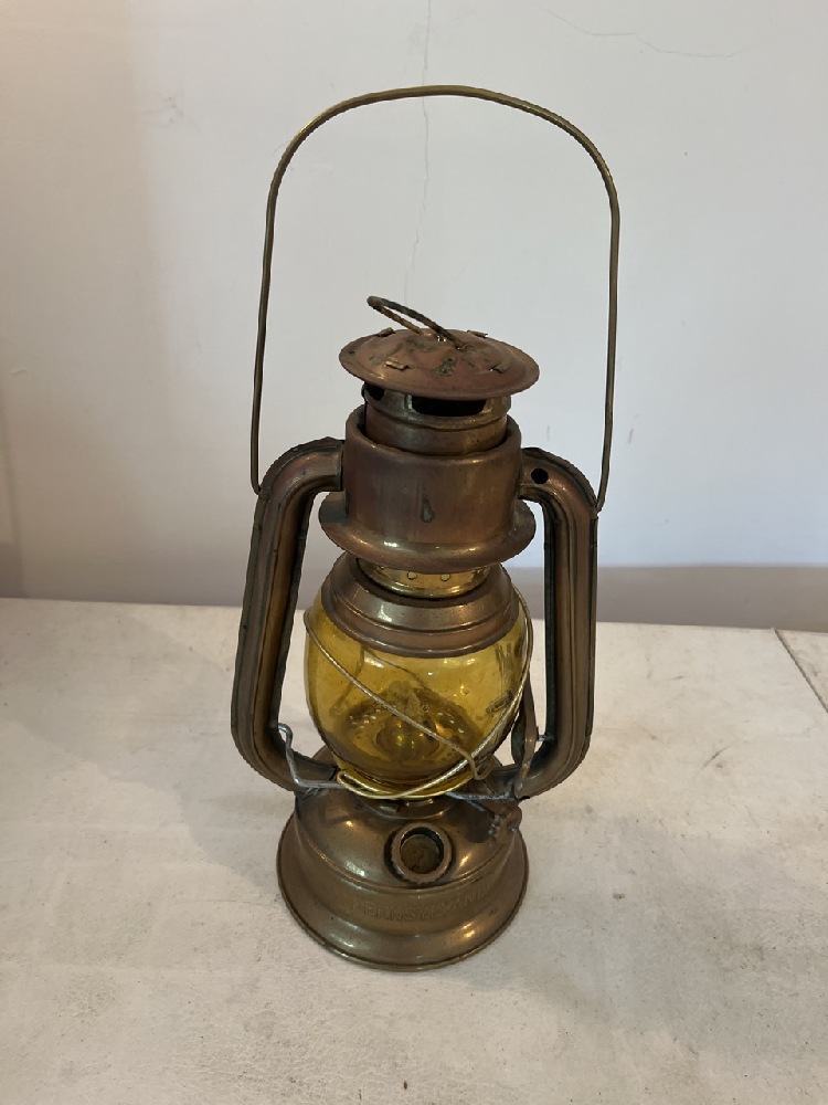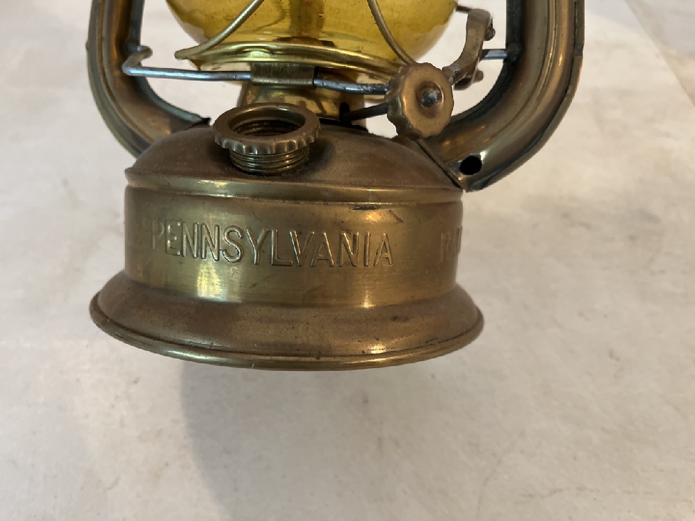 Vtg Pennsylvania Brass RR Lantern with Amber Globe- 12” T