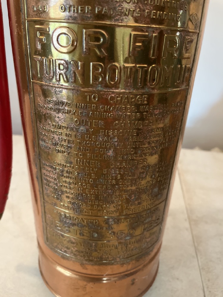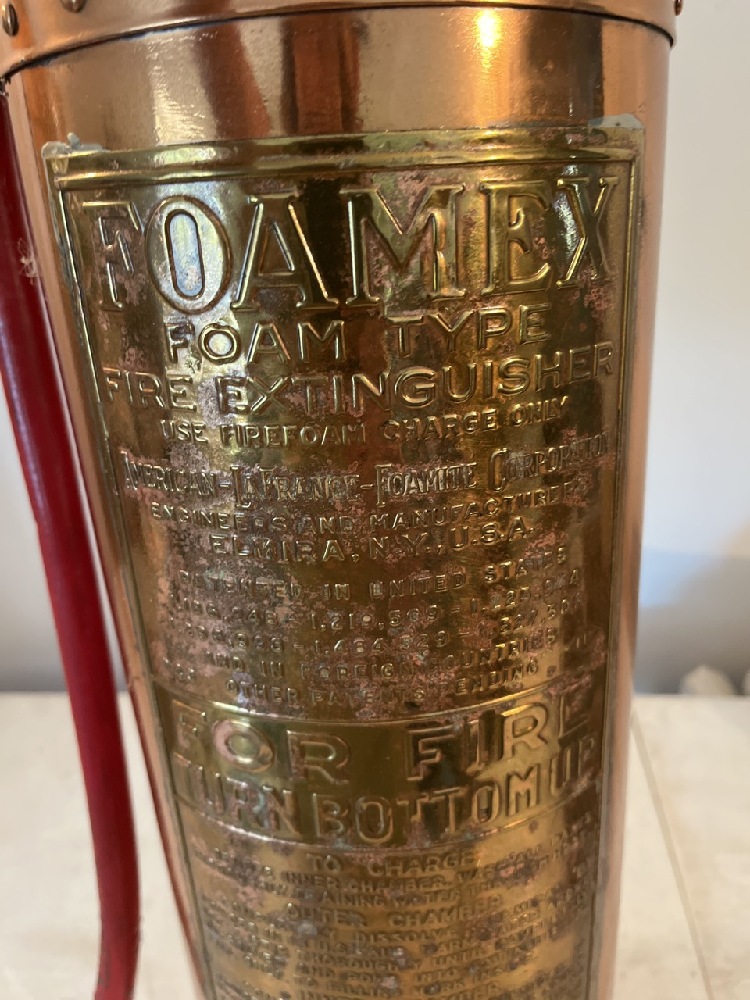 Vtg Foamex Copper Fire Extinguisher- 24” T 7 1/2” Round