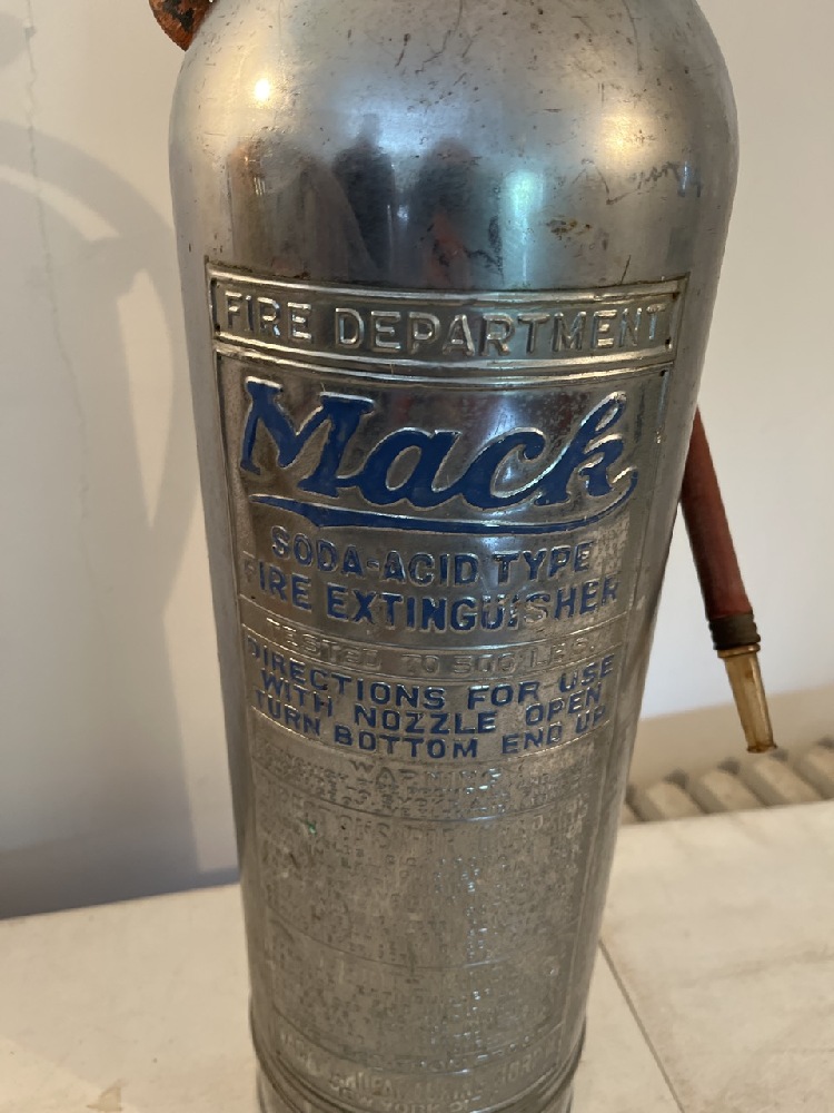 Vtg Mack Fire Dept Extinguisher- 24” T x 7 1/2” Round