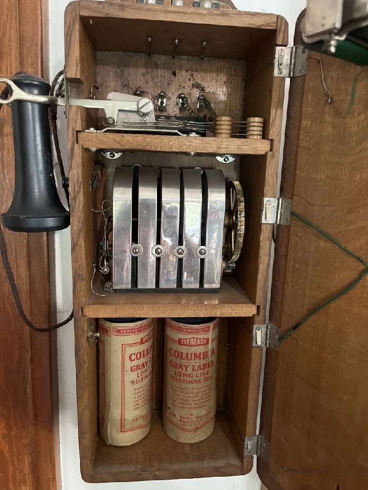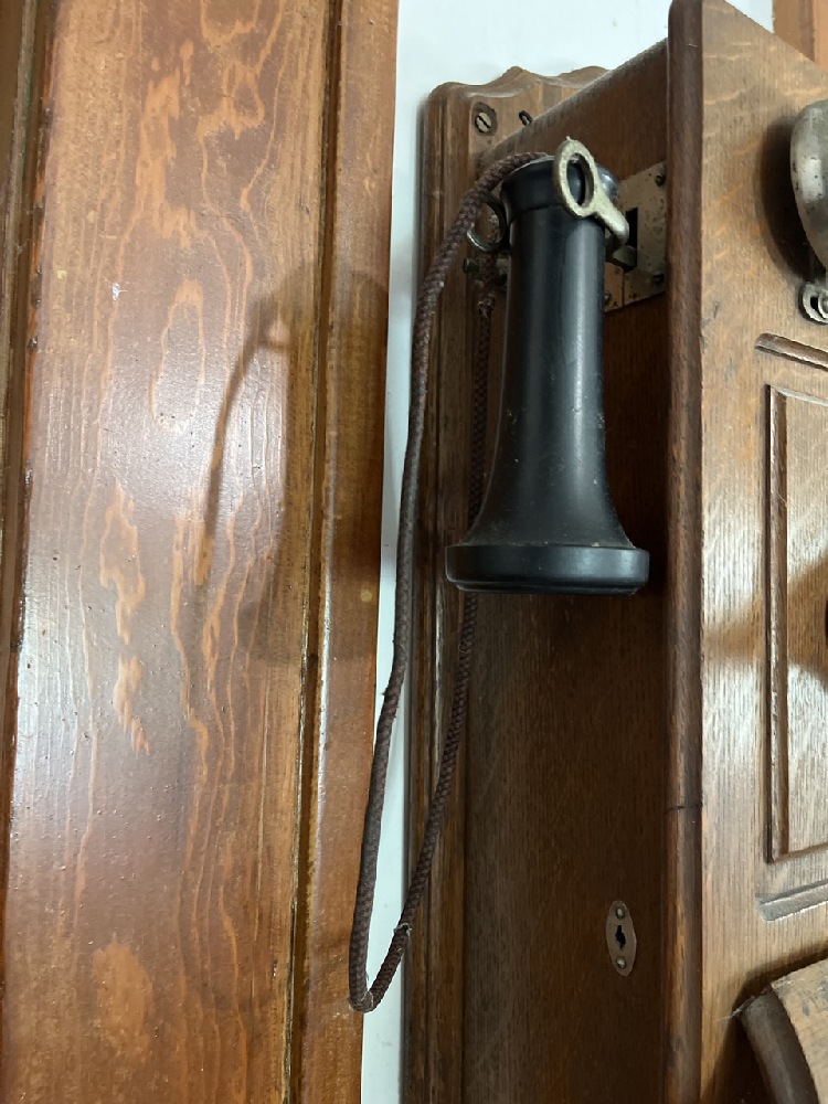 Vtg Oak Kellogg Crank Telephone- 23” T x 12” W x 11” D