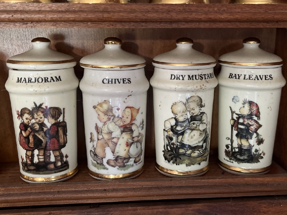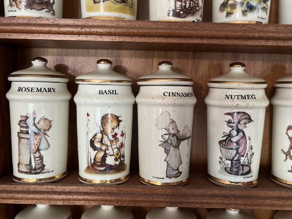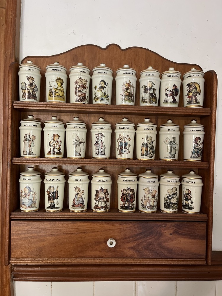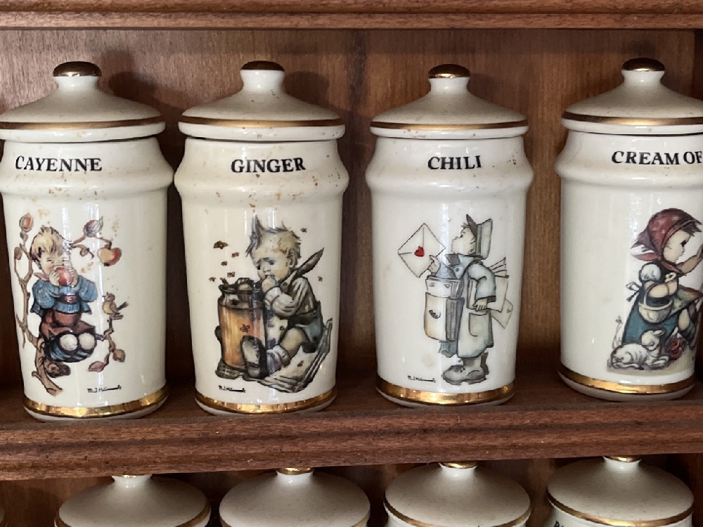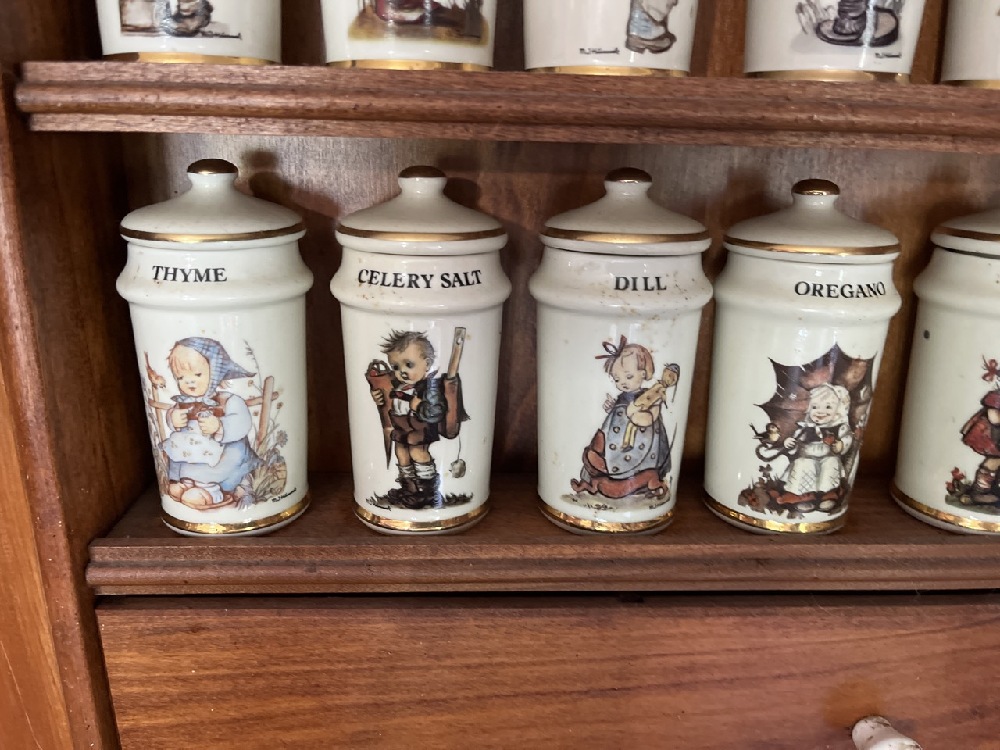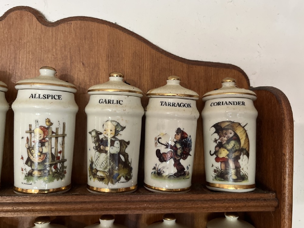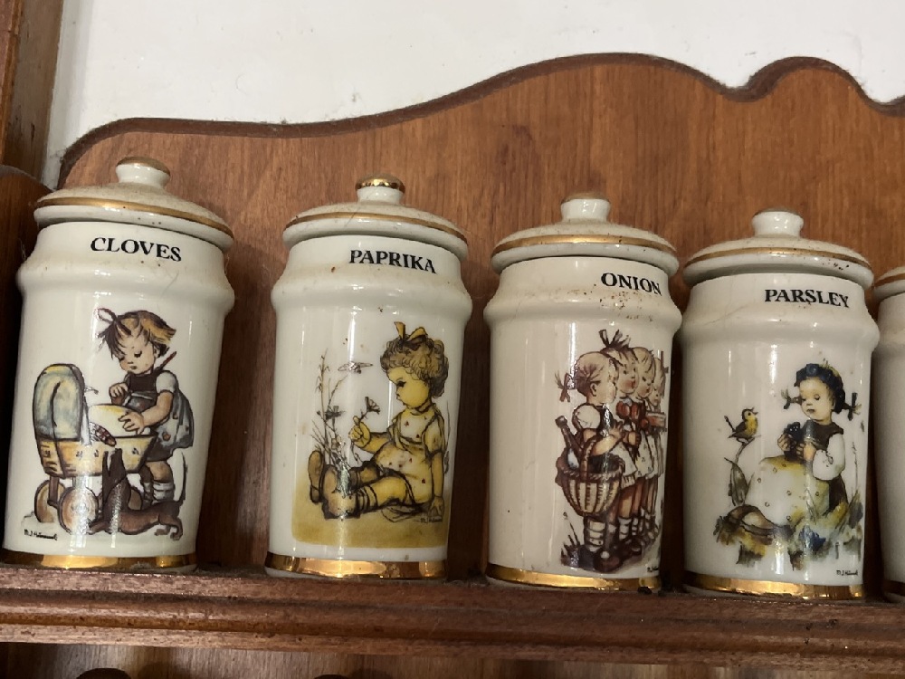 Vtg MJ Hummel DaSpice Jars Set by Danbury Mint- Rack is 21” T x 19” W x 3 1/2” D