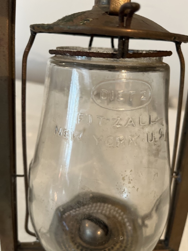 Vtg Dietz Brass Fire Dept. Lantern with Dietz Fitzall Globe- 14” T