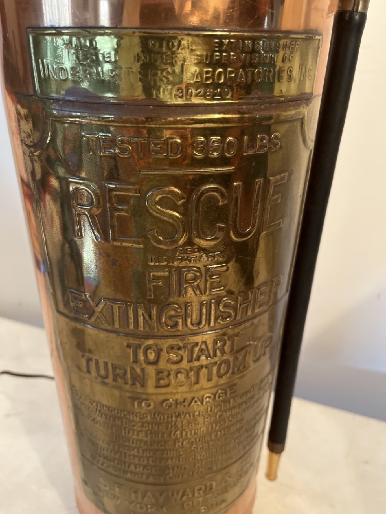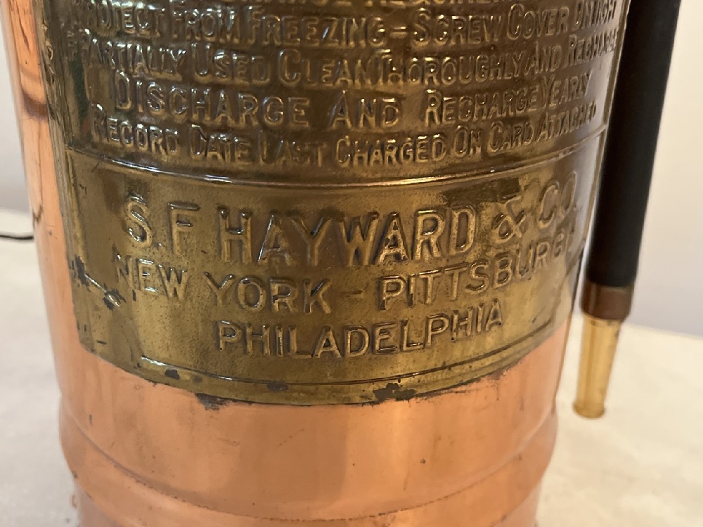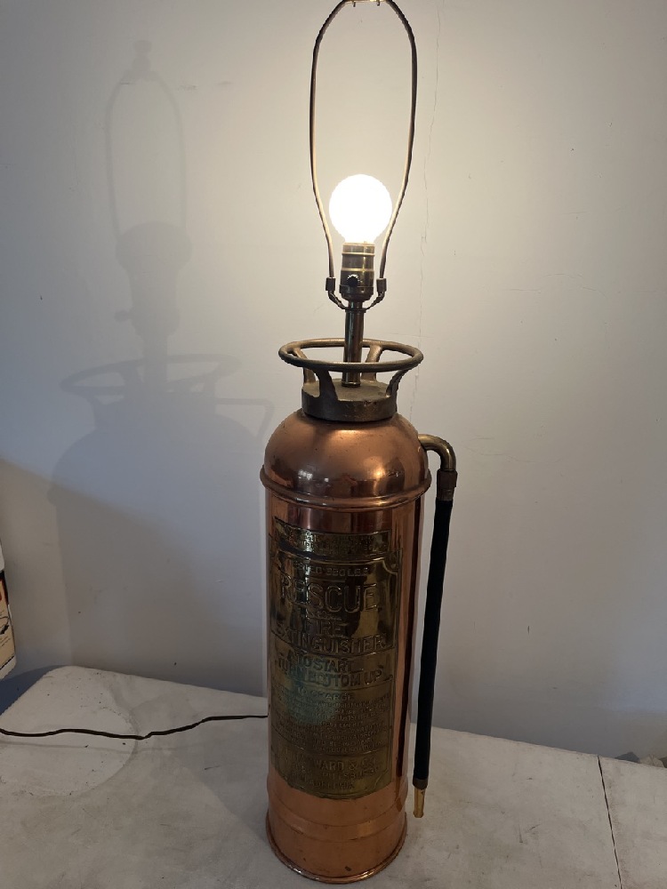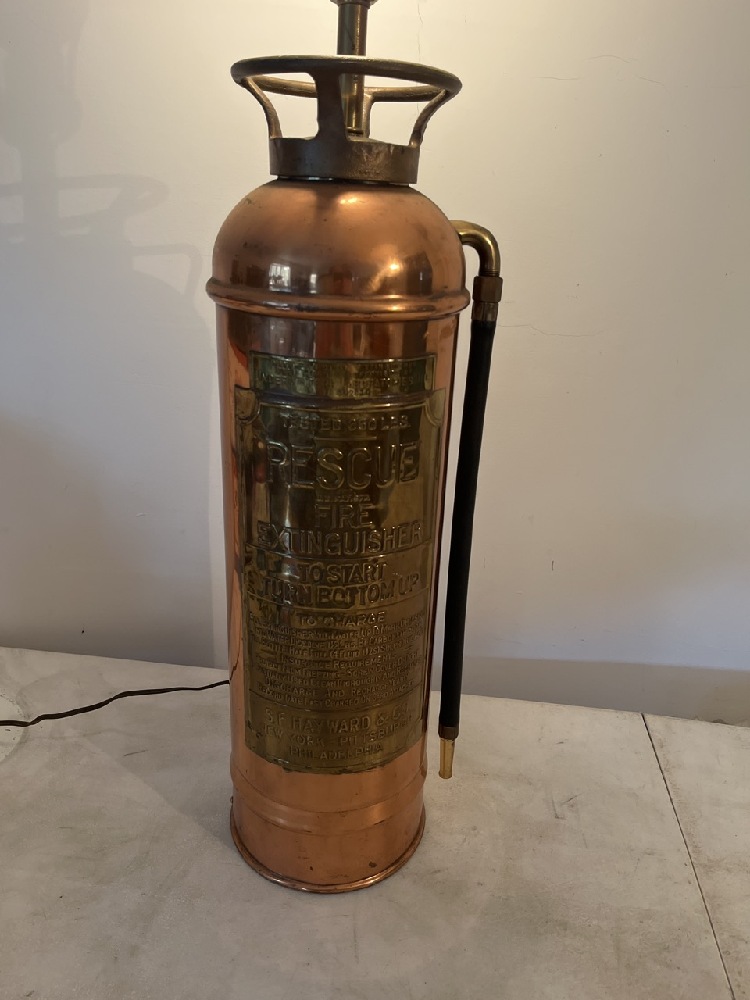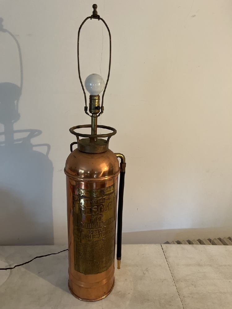 Vtg S. F. Hayward & Co. Copper Extinguisher Light- 38” T x 7 1/2” Round- works