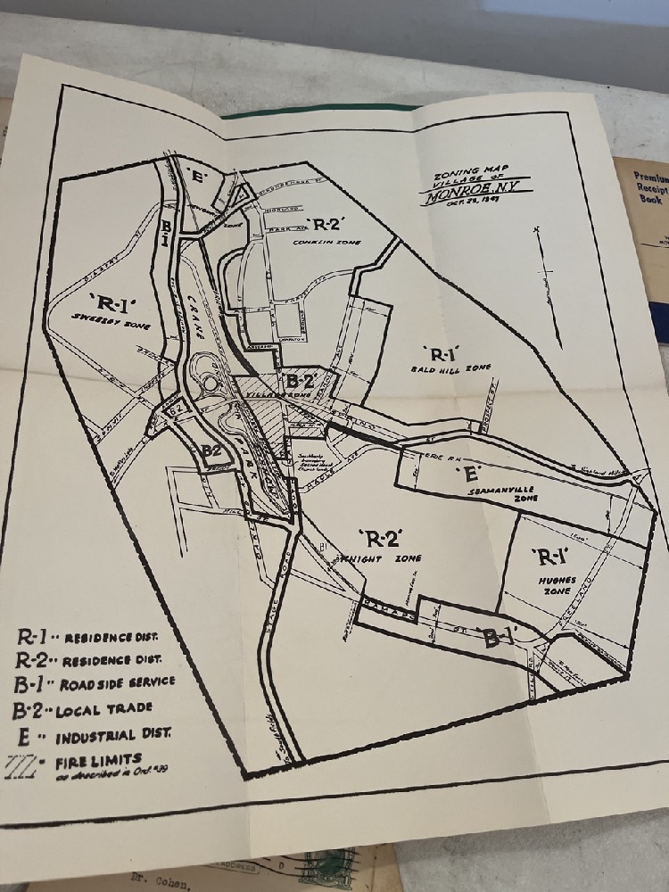 Vtg Local Ephemera including Chester The Suburb Beautiful Book, 1947 Monroe Zoning Ordinance Book, Handy Pocket Map, 1968 Costa Rica $5.00, 2- 1960 Warwick Dispatch newspapers, Photo