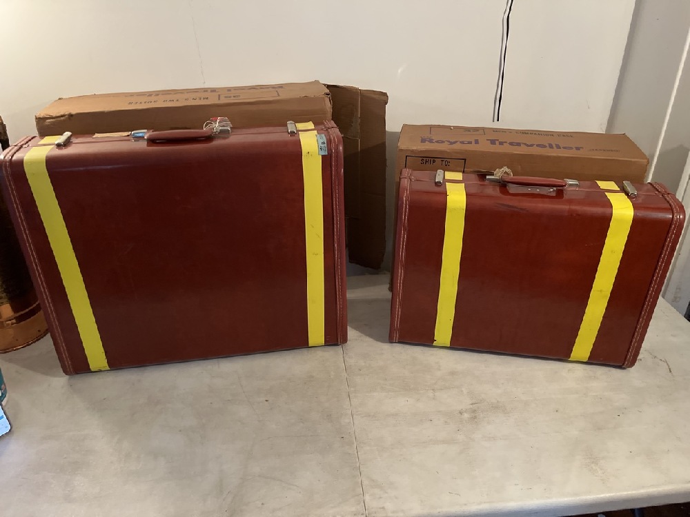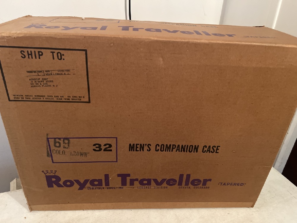 Vtg Royal Traveler Luggage set- No. 35 Men’s 2 Suiter & No. 32 Men’s Companion Case in Original Boxes- 25” x 20.5” x 8.5” & 22” x 16.5” x 8”