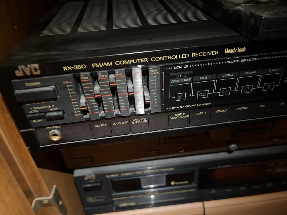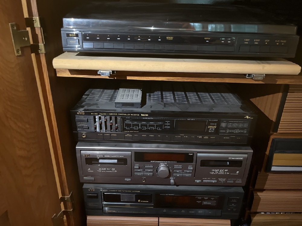 Vtg JVC Stereo System including BSR XL-1200 Turntable, JVC RX-668VReciever, JVC RX-350 AN-FM Receiver, JVC XL-M300 Compact 6 Disc Changer, JVC TD-W315 Double Cassette Player/Recorder