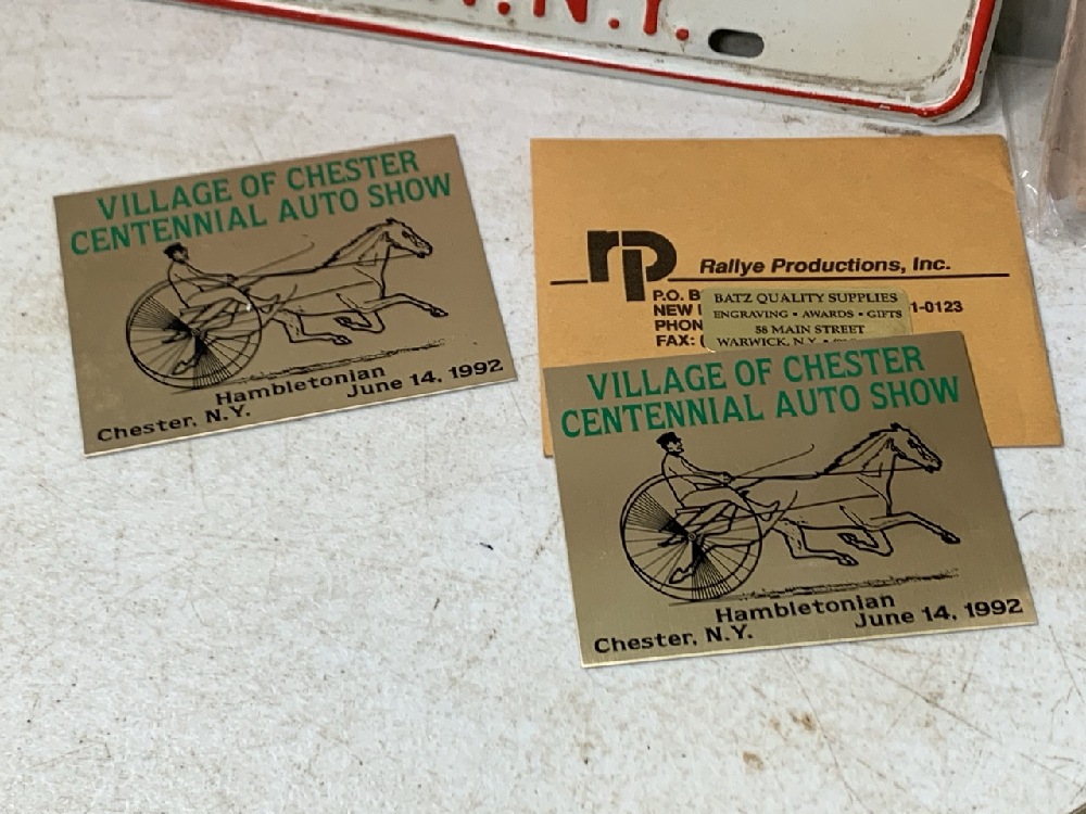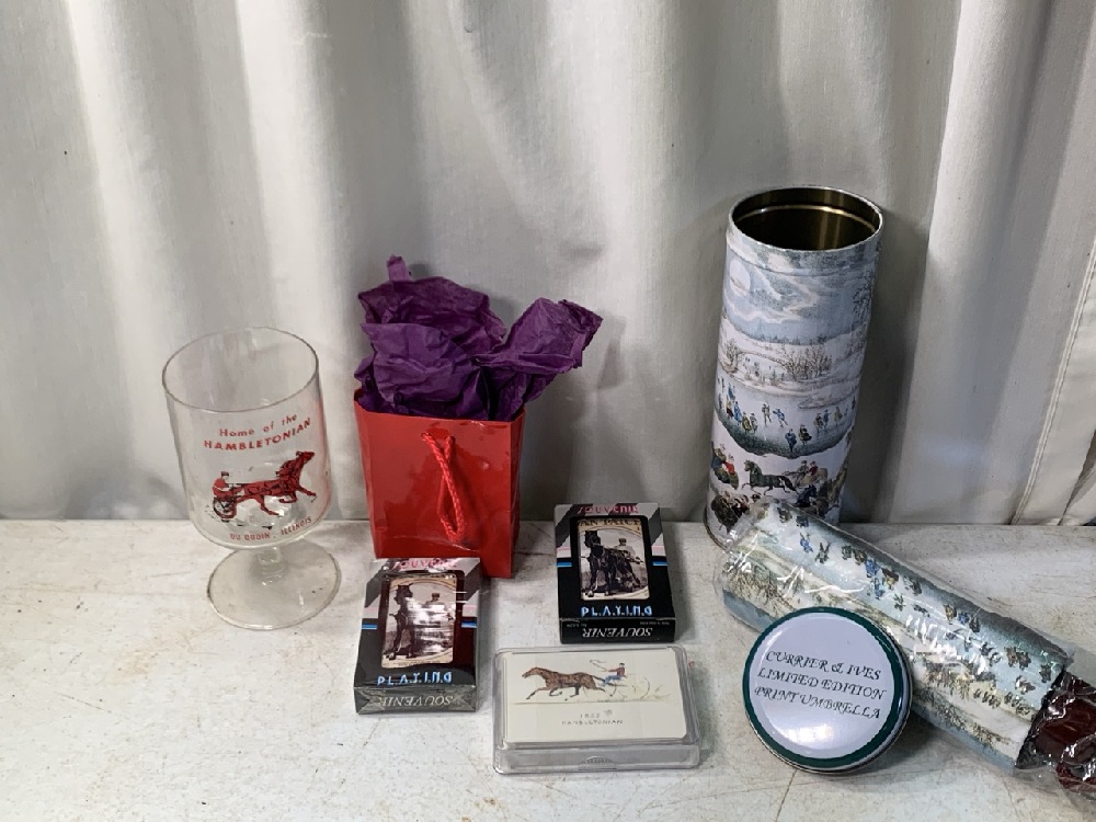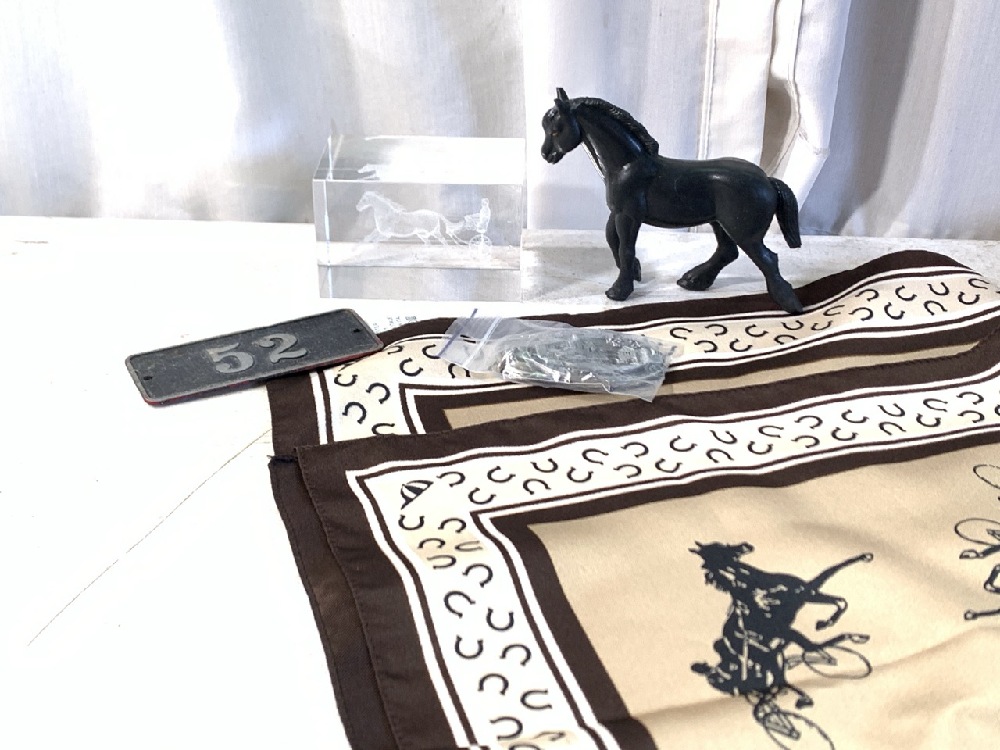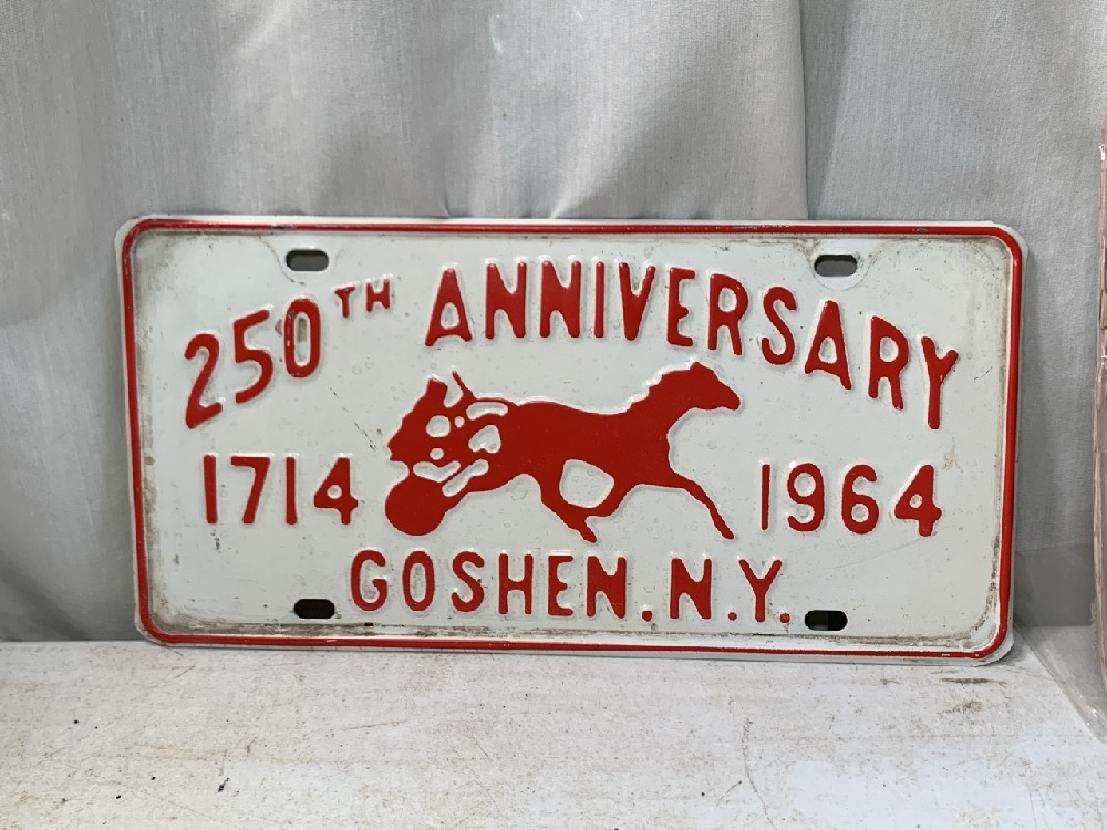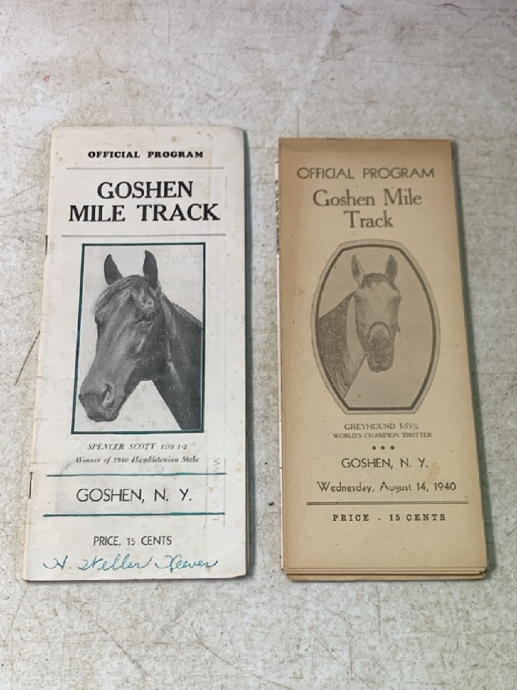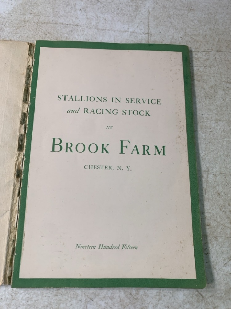 Equestrian Memorabilia - Brook Farm Chester Advertising Book, Fasig’s Tales of Turf and Memoir Book, Goshen Mile Track Program 1940, Silk Scarf, Playing Cards, License Plate and More