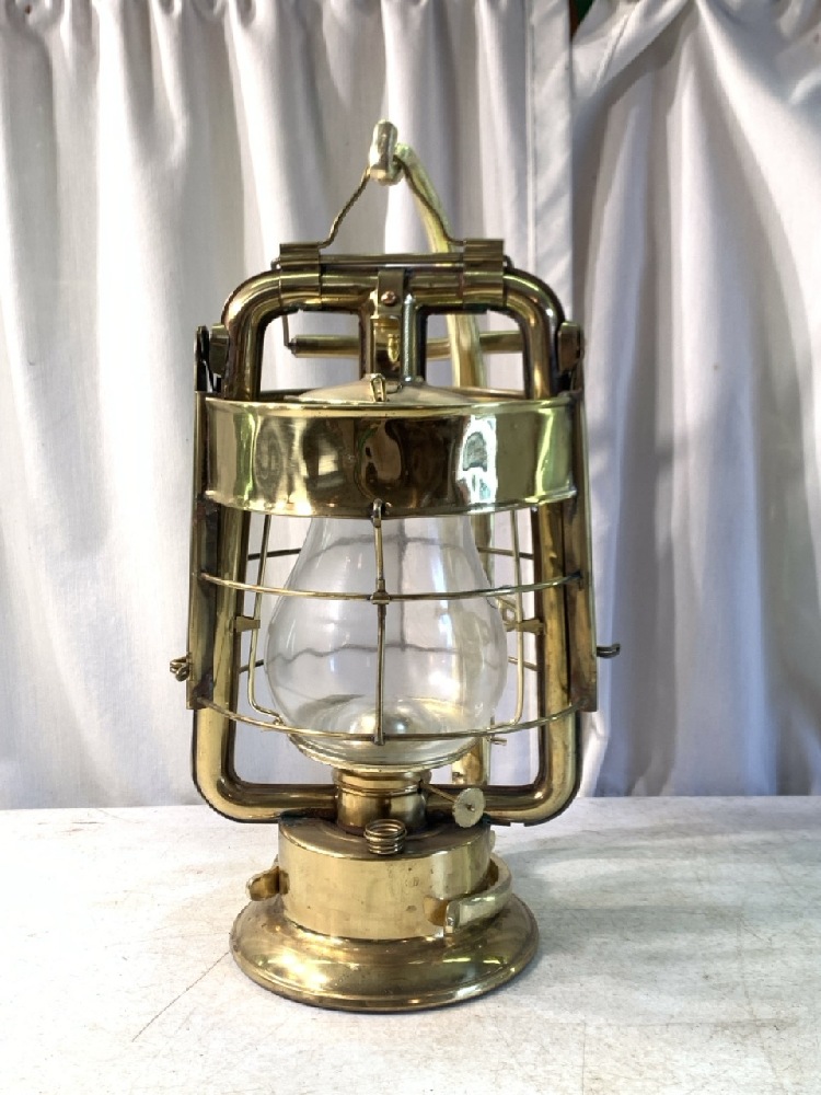 Vintage Fire Department Brass Lantern ~ 15” Tall