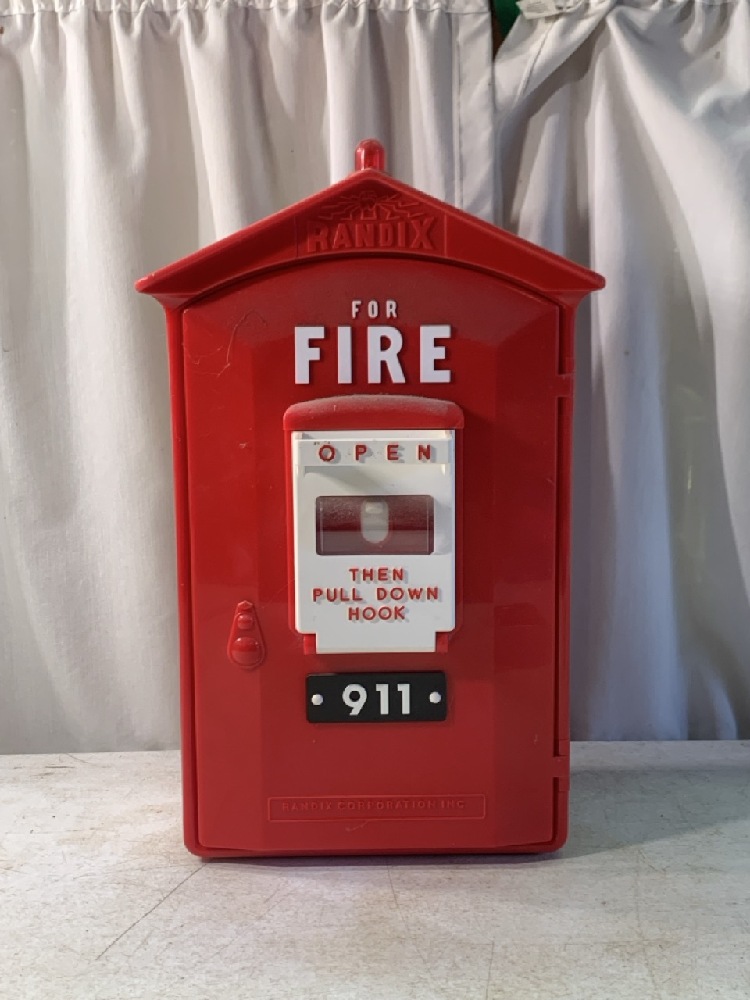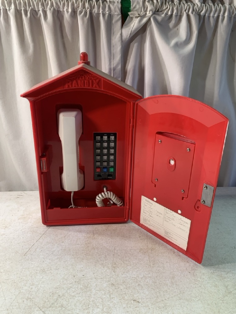 Vtg. Randix Fire Box Novelty Push Button Telephone designed to Resemble a fire Call Box ~ 15” Tall