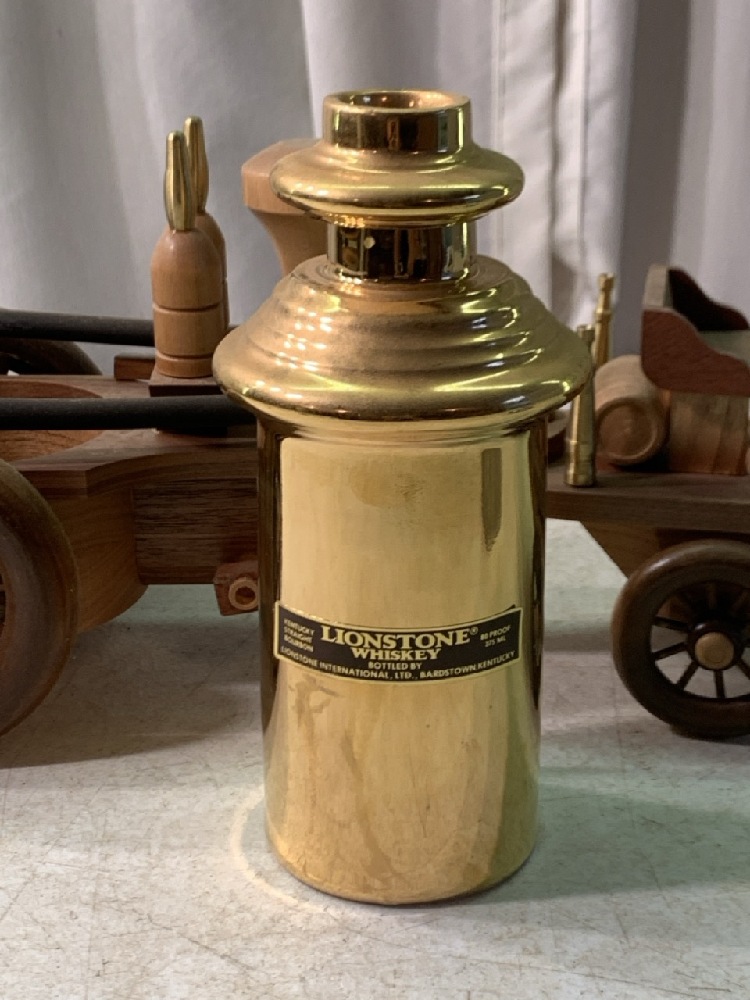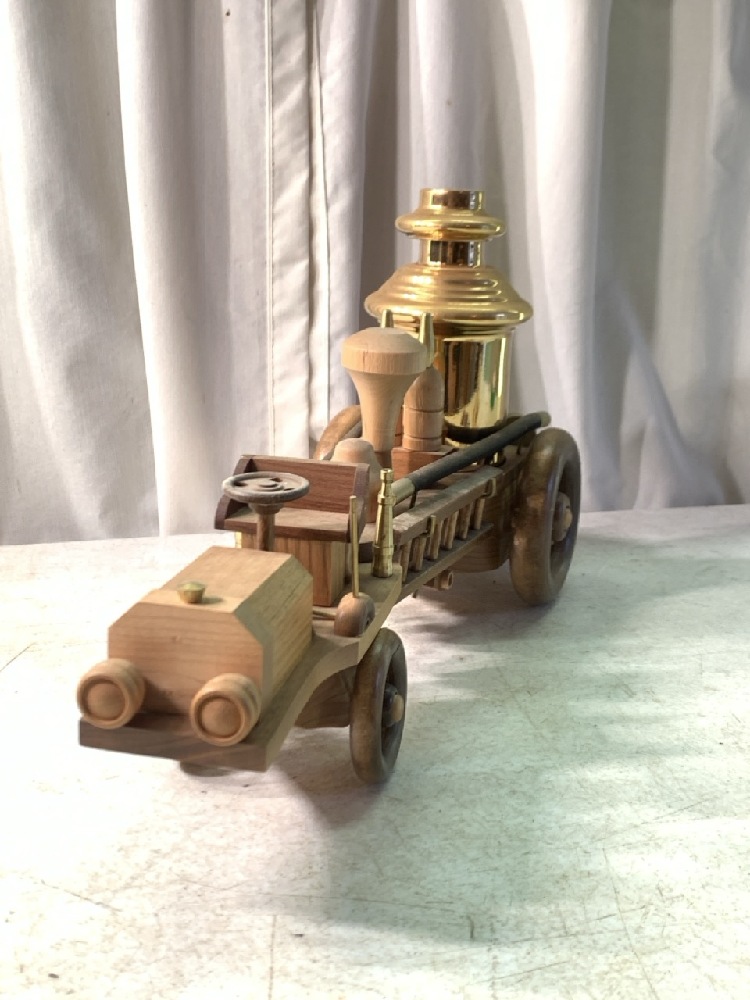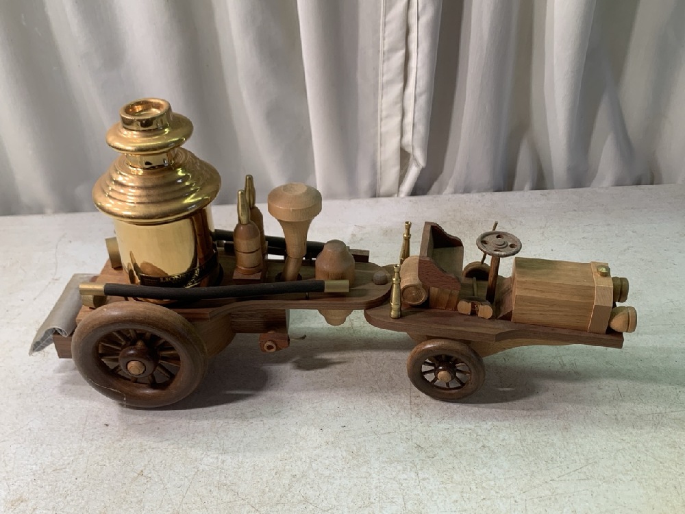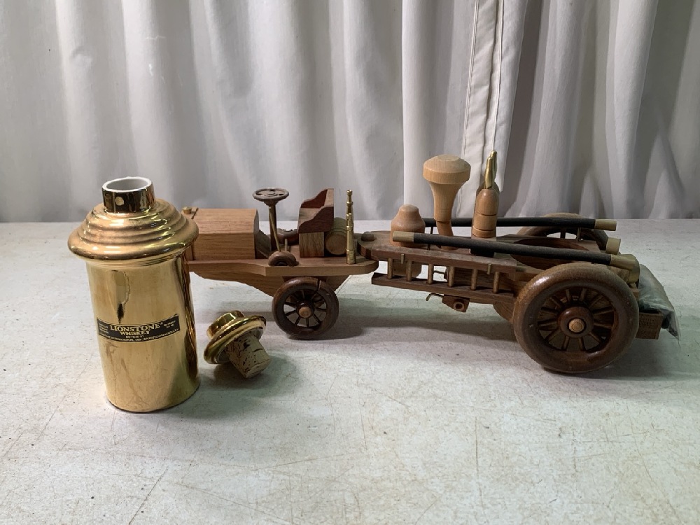 Vtg. Wooden Steam Powered Fire Engine Lionstone Decanter - 18” Long