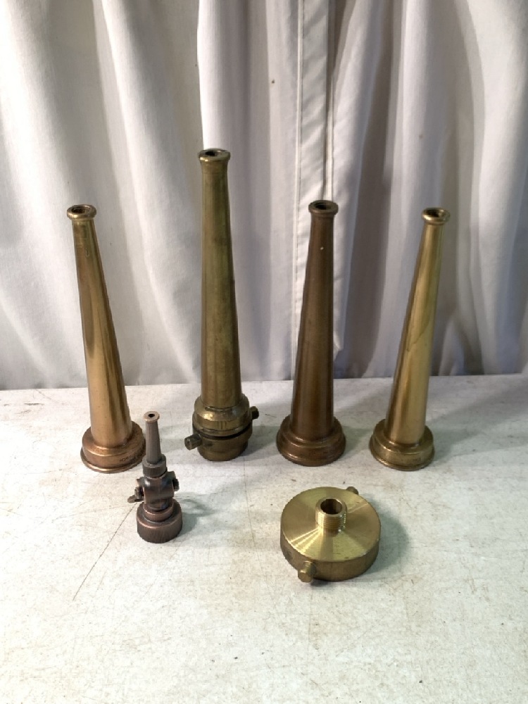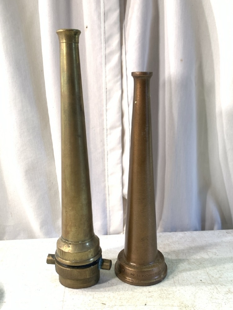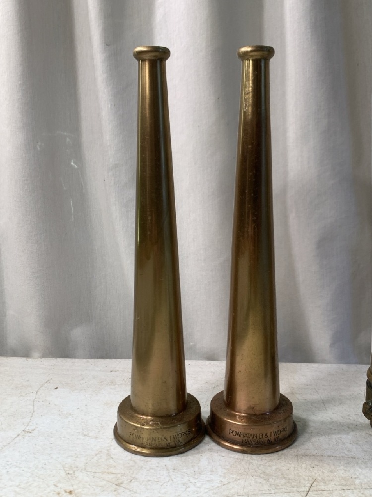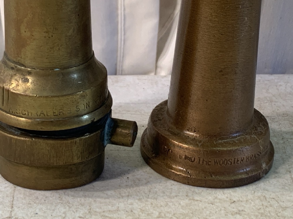 Brass Fire Hose Nozzles - Powhatan B & I Works , The Wooster Brass Co., A. Schralers son NY