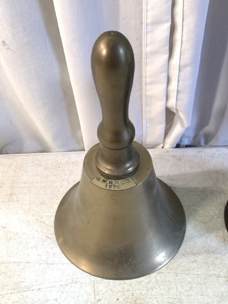 Vtg. Brass Bells - G.W.R.R. Co. 1878 ( 9 1/2” Tall) Reno Fire Dept. 1886 ( 8 1/2” Tall)