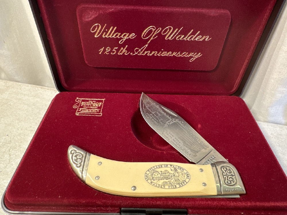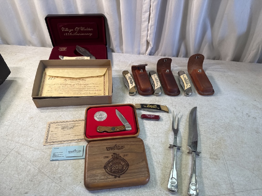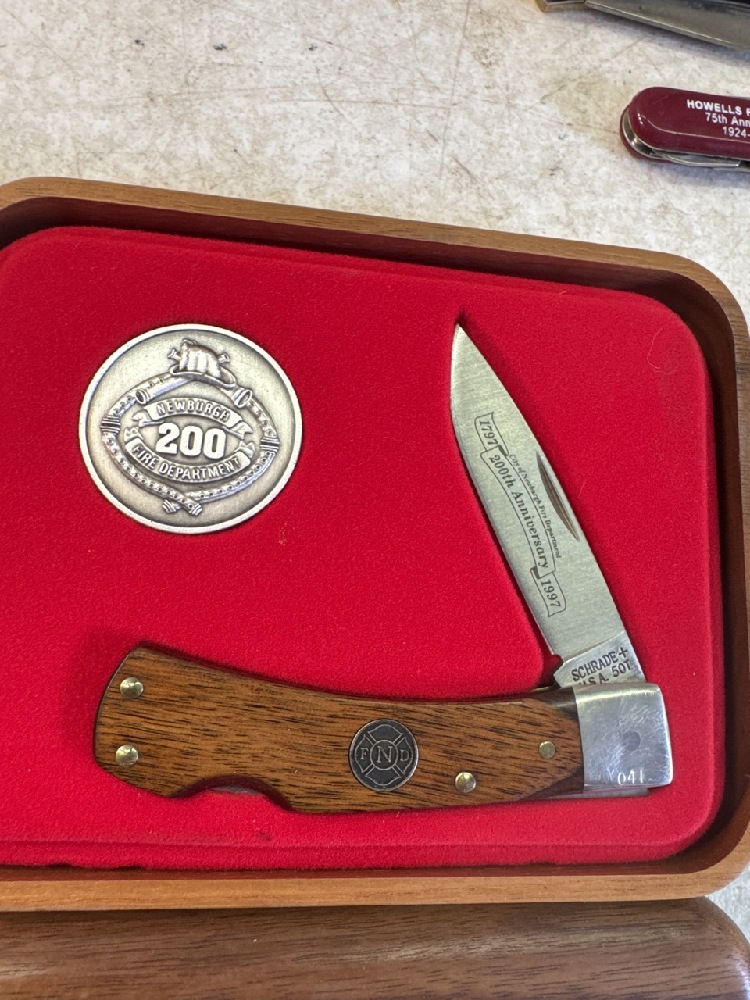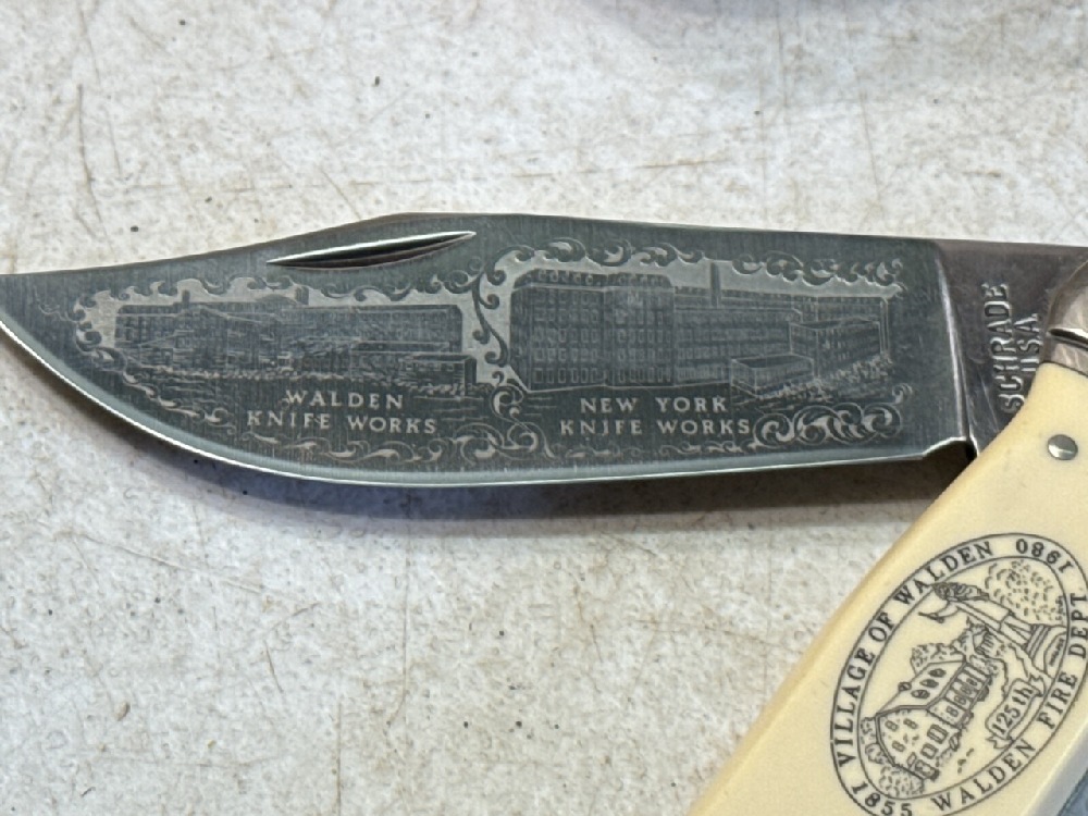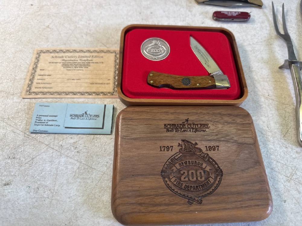 Scrade Fire Dept. Pocket Knives including Col. Bradley Hose, Walden, Newburgh & Fire Chief Carving Set