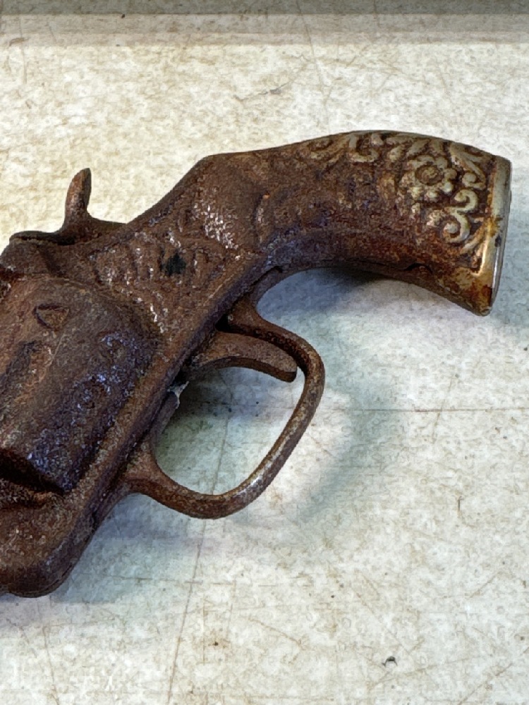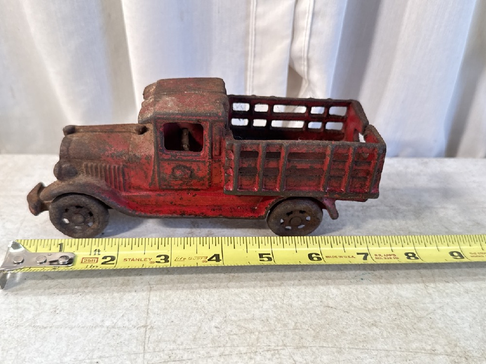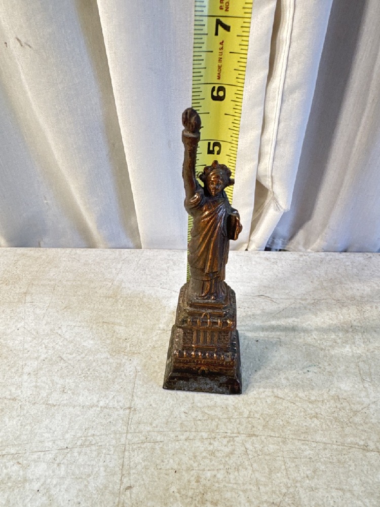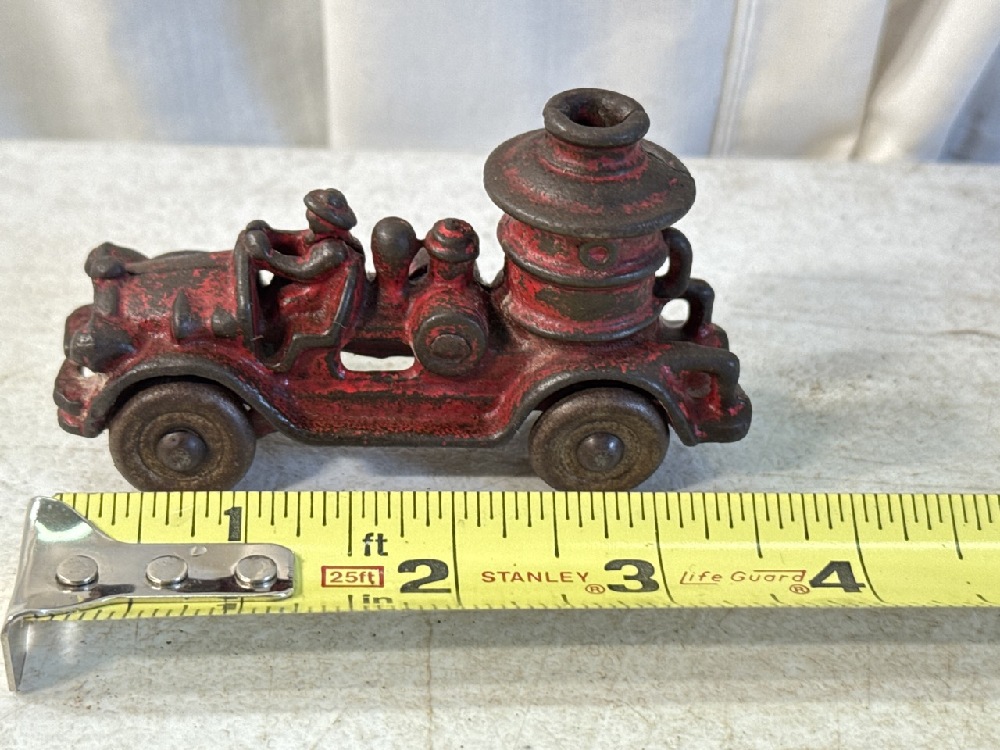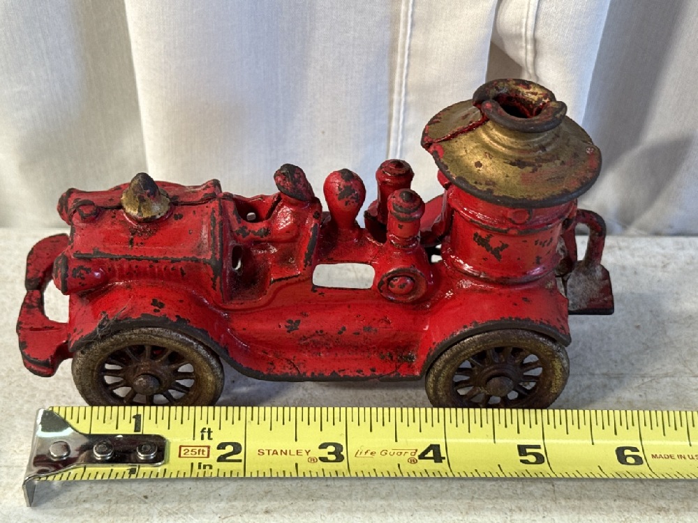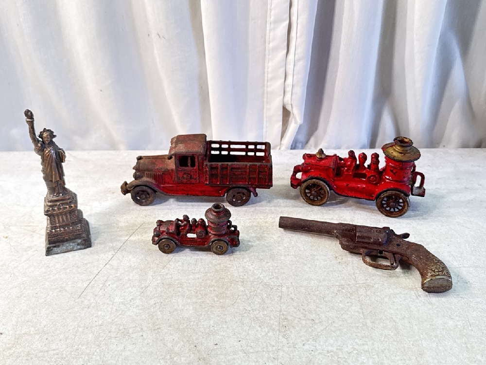 Vtg Cast Iron Firetrucks, Pickup, Gun & Brass Statue of Liberty