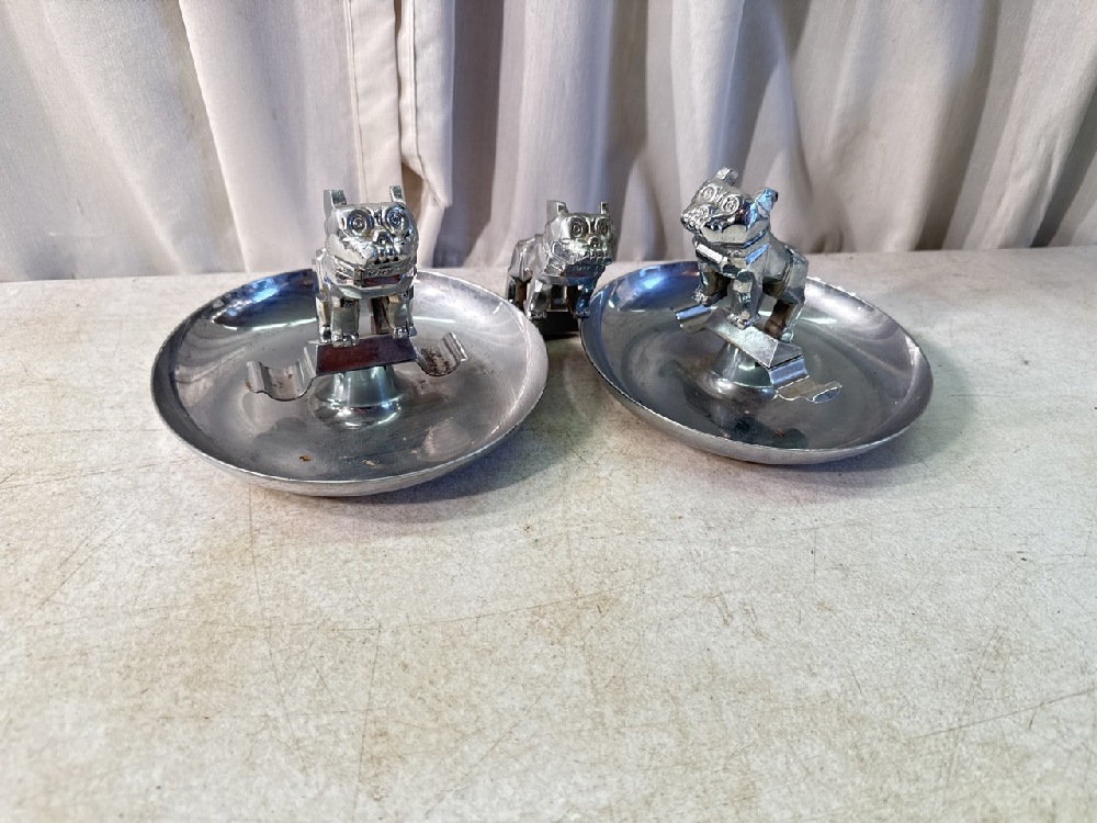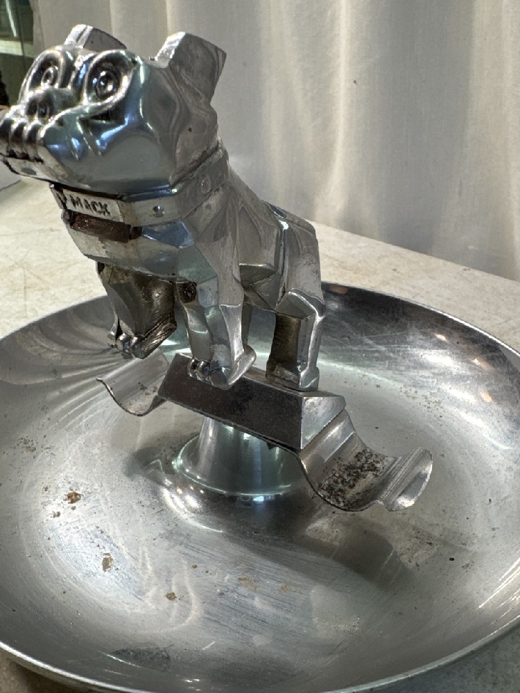 Vtg Mack Truck Bulldog Hood Ornament & 2- Cigar Ashtrays