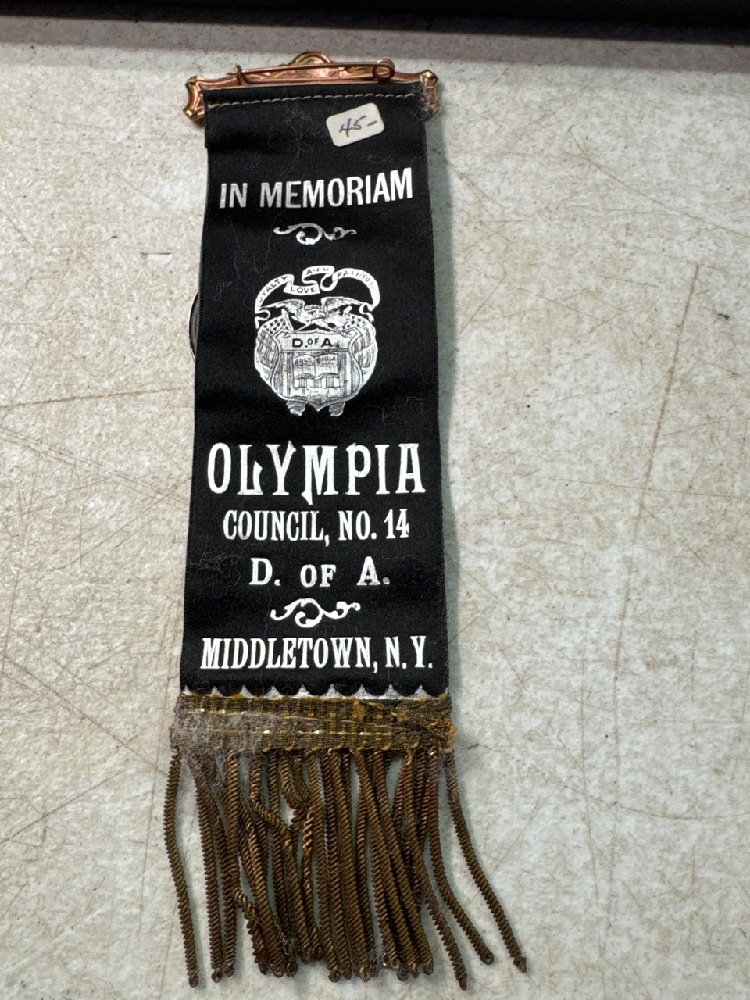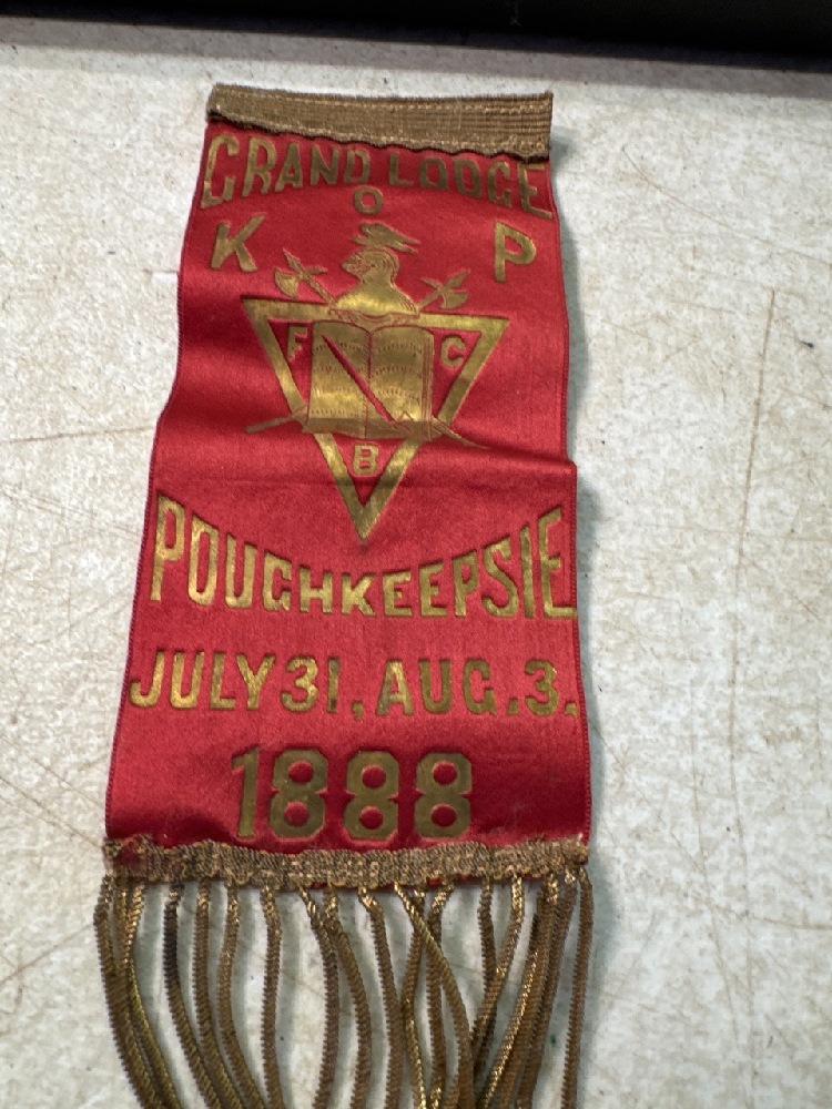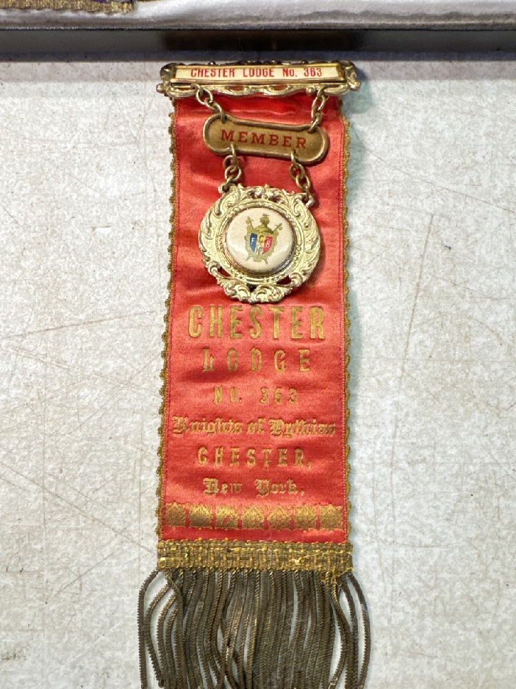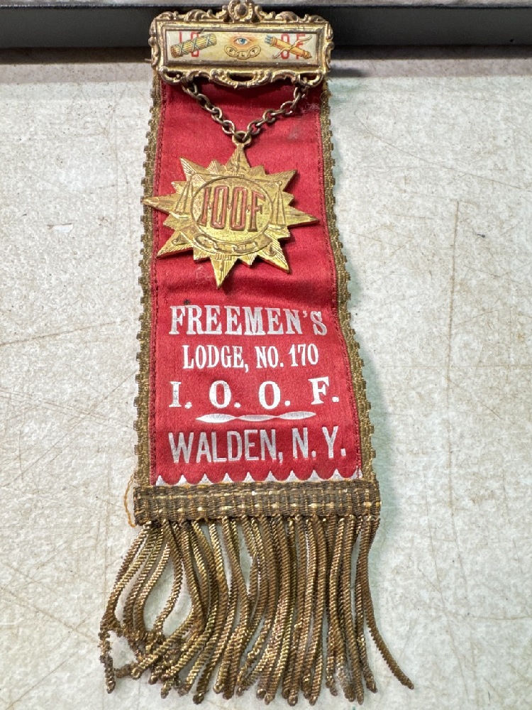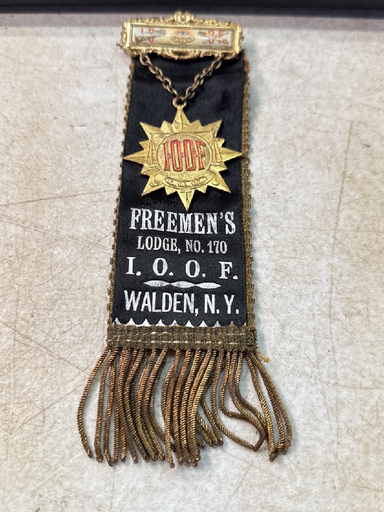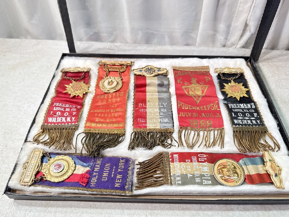 Antique Local Lodge Badges including Walden, Middletown, Poughkeepsie, Chester,NY in 16” x 12” Display Case