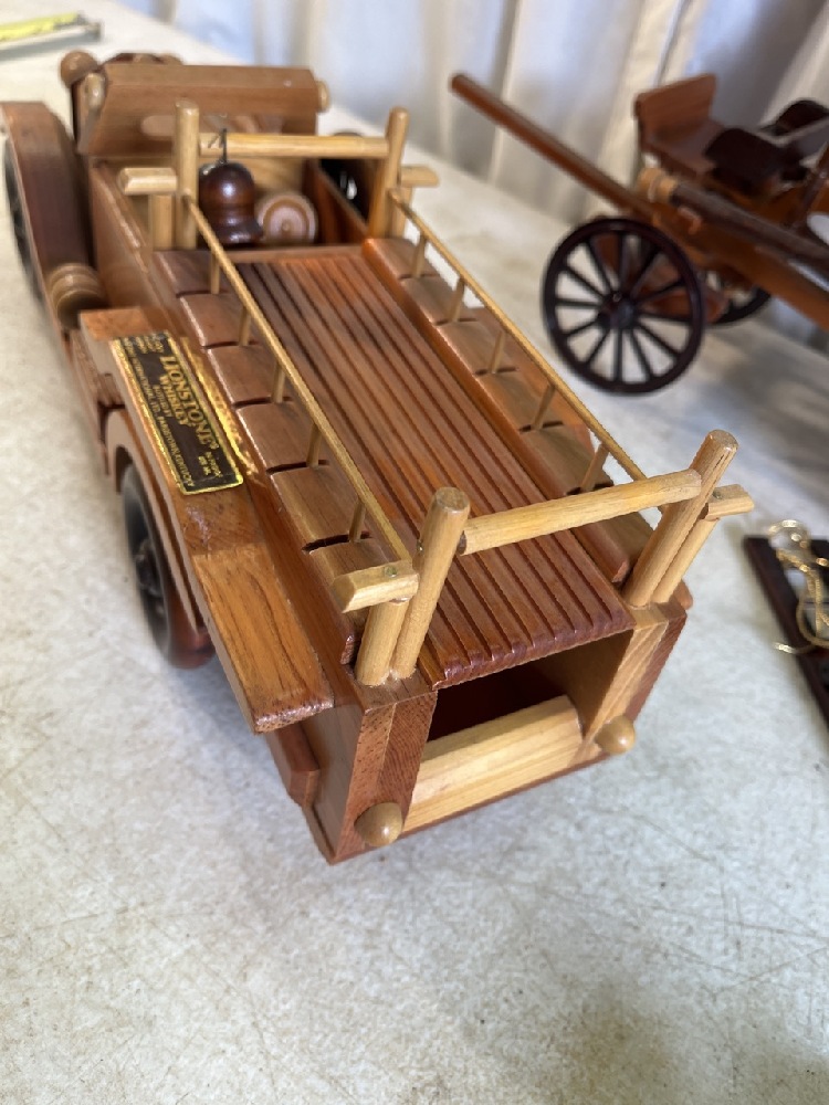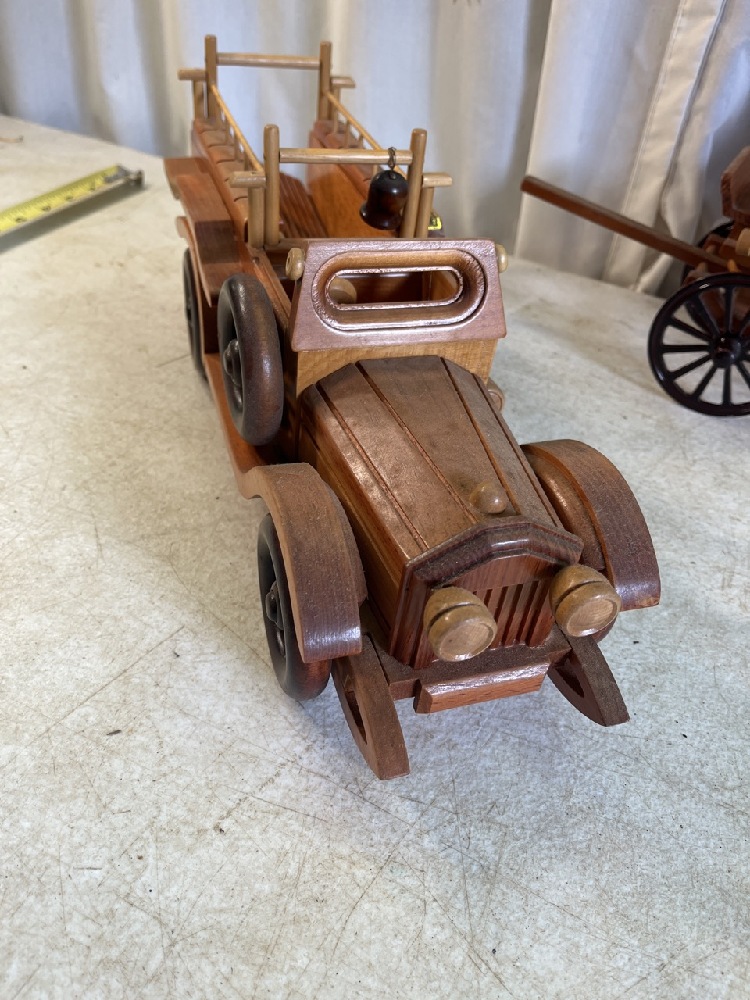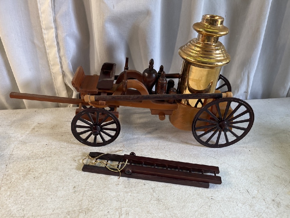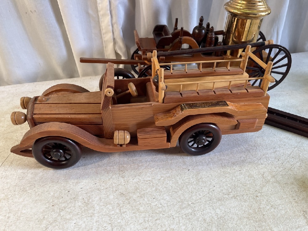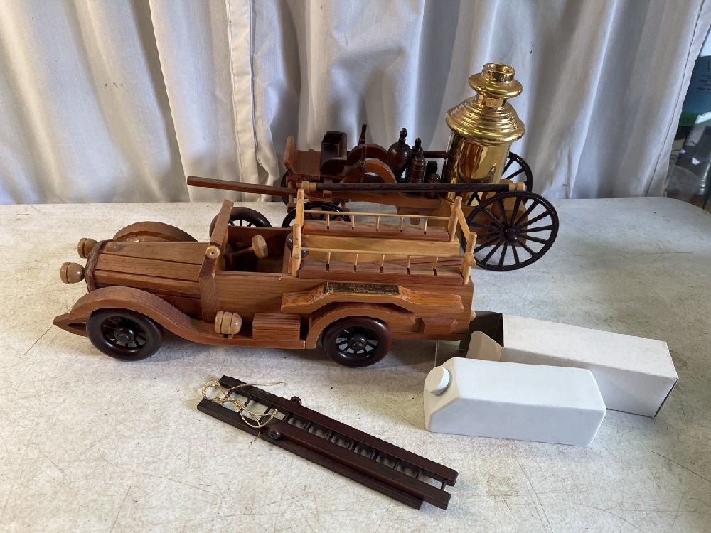 Lionstone Wooden Firetruck Decanters including Wooden Ladder Truck- 16” L & Wooden Steam Truck- 17” L