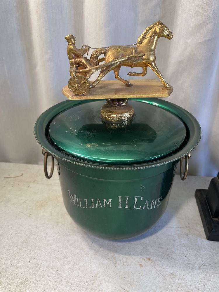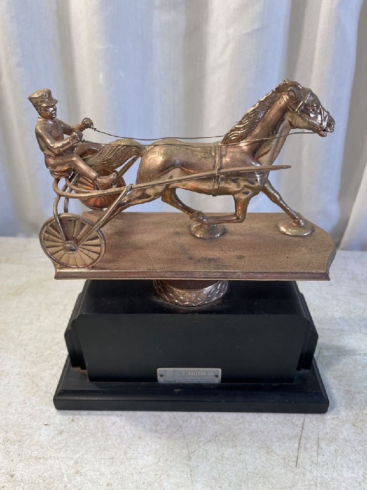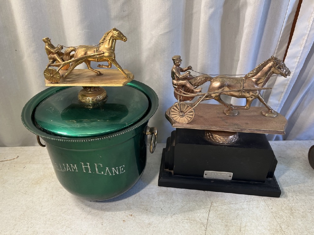 2- Vtg Harness Racing Trophies including L.G. Balfour Co- 10.5” T x 9” L x 4” W & Ice Bucket - 12” T x 8.5” Round