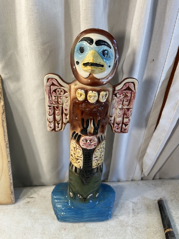 Vtg Ezra Brooks Totem Pole Decanter, Painted Slate, Handmade Broom, & Dream Catcher