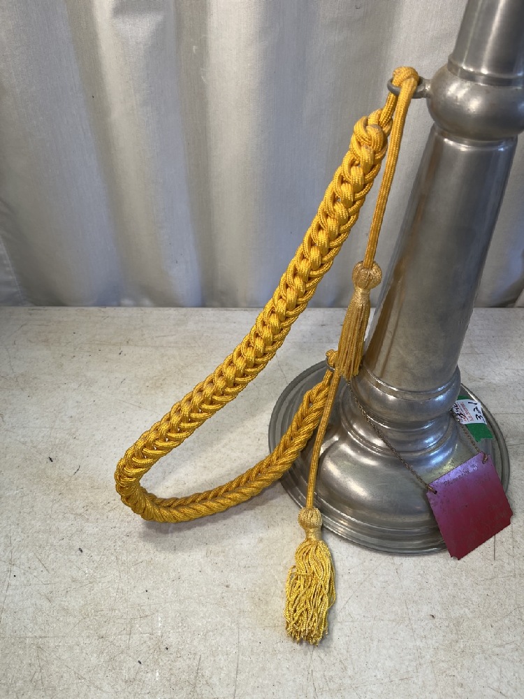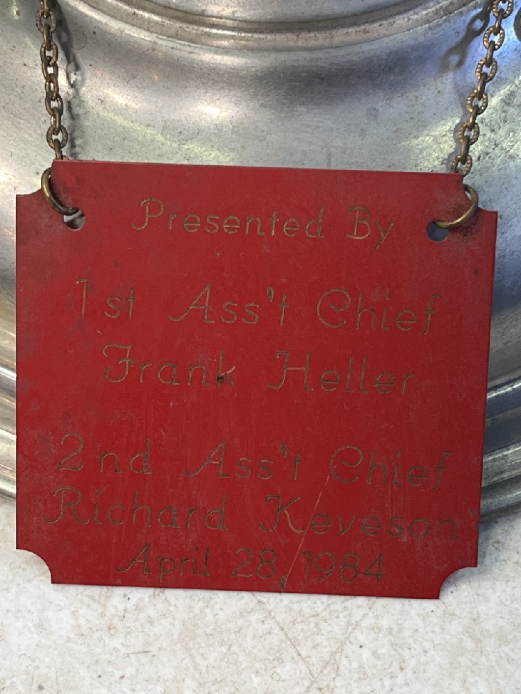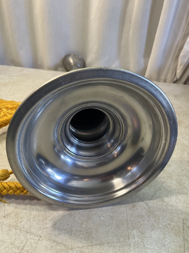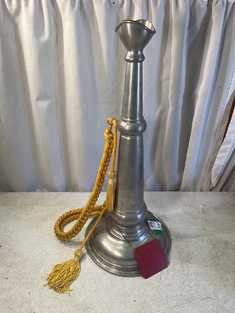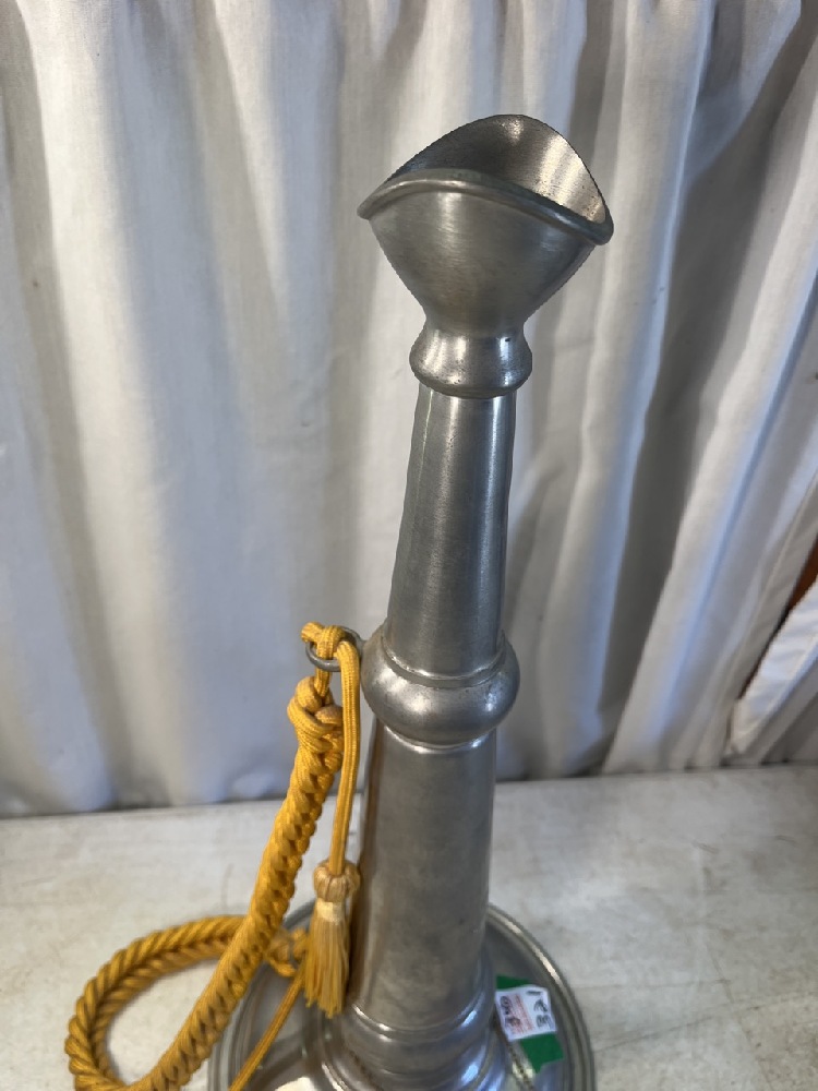 Brass Ceremonial Fire Trumpet with Engraved Plaque- 19” T x 8.5” Round