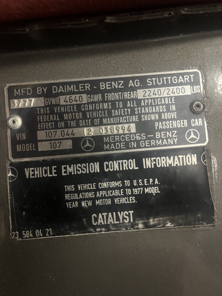 1977 Mercedes 450SL, 87,563 Miles, Soft Top & Hard Top- Starts but doesn't Stay Running