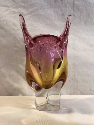 MCM Chribska Cat’s Head Glass Vase by Josef Hospodka - Amber and Pink Glass- 9” Tall