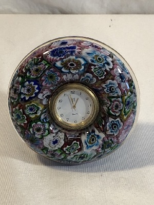 Murano Millefiori Mosaic Flowers Italian art Glass Desk Clock - 4” Round