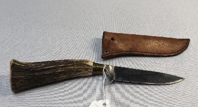 Stag Handled handmade knife with leather sheath -8" total length