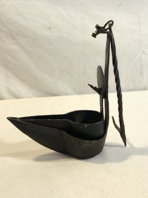 Antique Iron Betty Oil Lamp - 7” Tall x5 1/2”