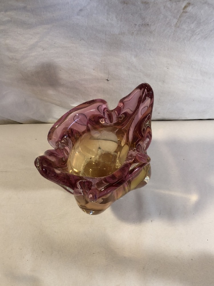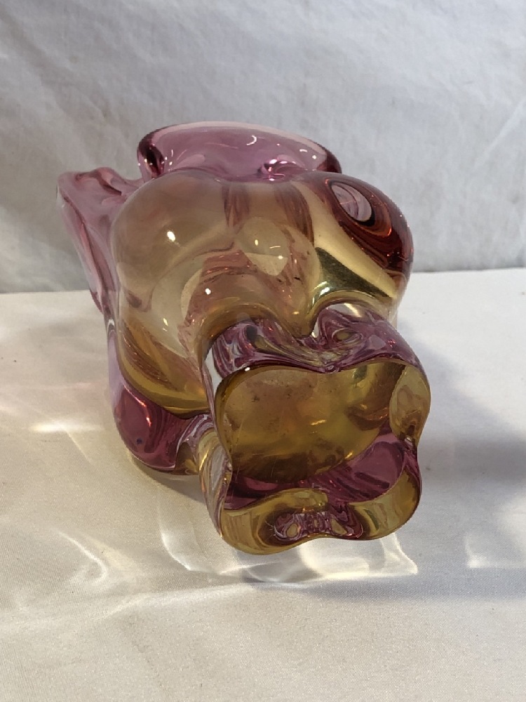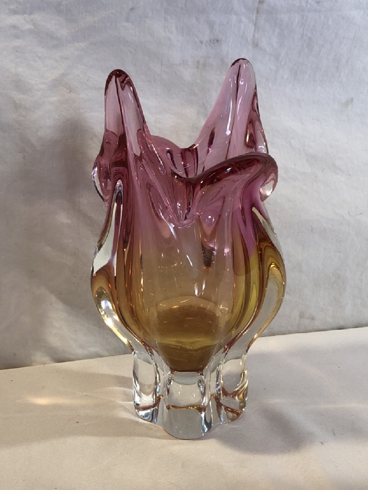 MCM Chribska Cat’s Head Glass Vase by Josef Hospodka - Amber and Pink Glass- 9” Tall