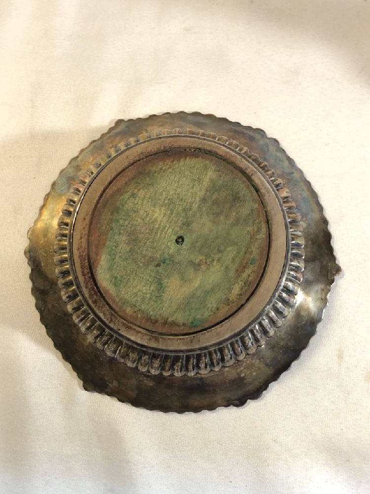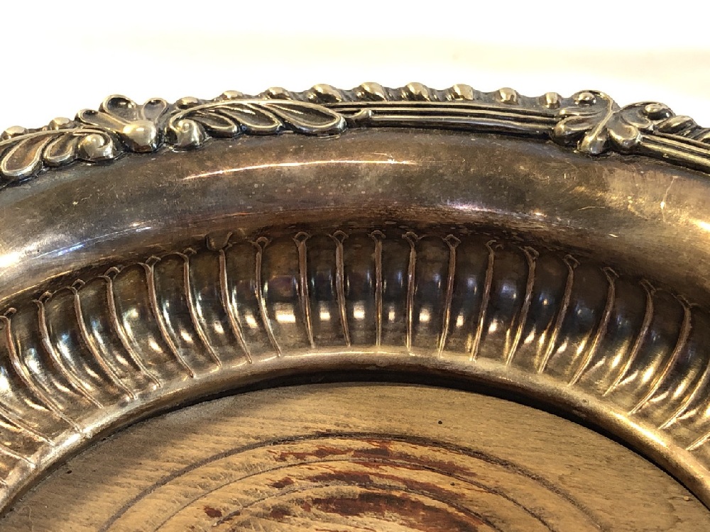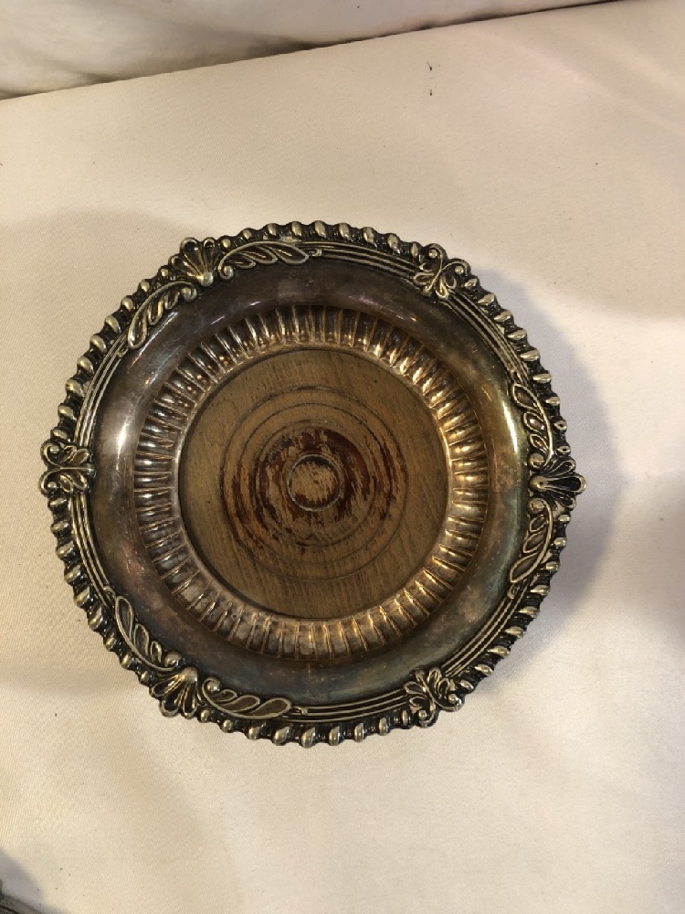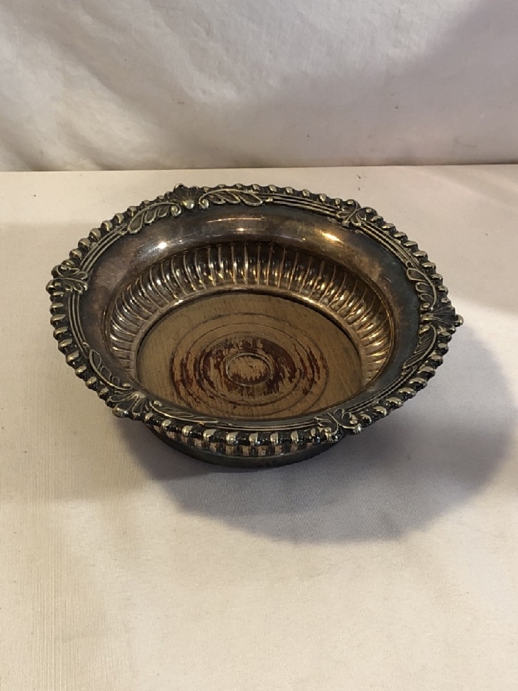 Victorian Style Bottle Coaster Silver Plate/ Wood Coaster