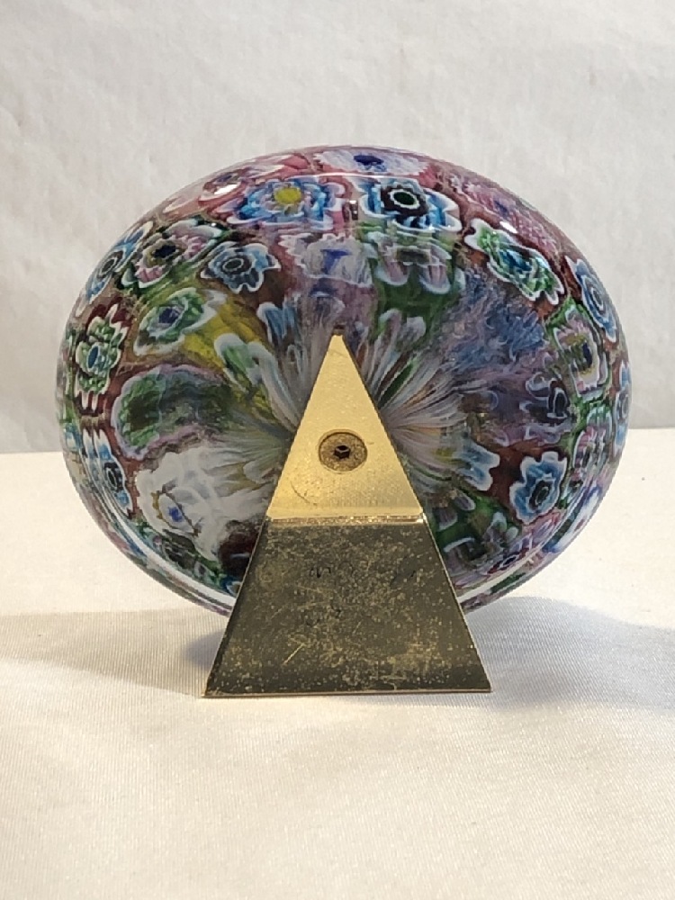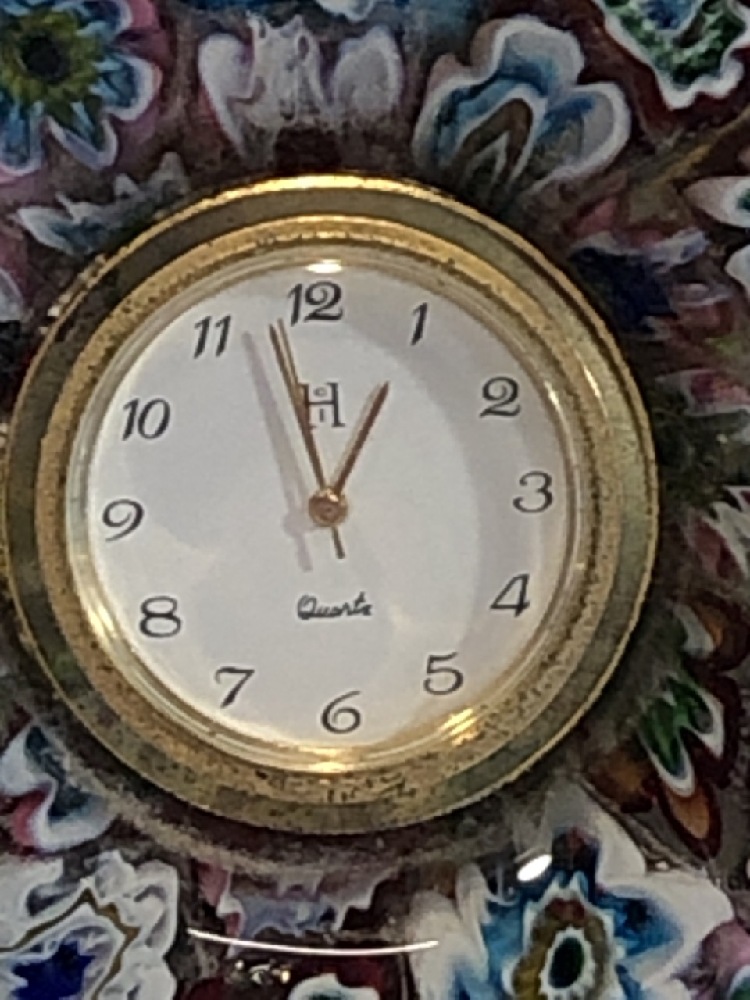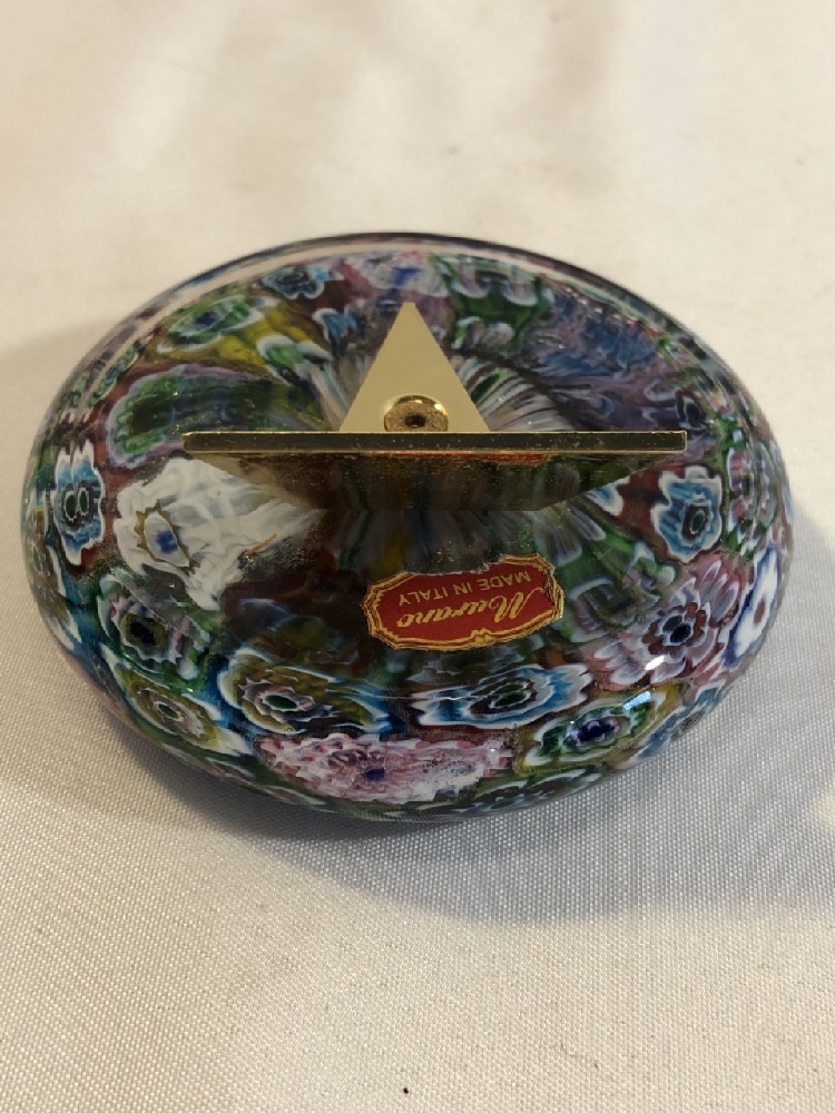 Murano Millefiori Mosaic Flowers Italian art Glass Desk Clock - 4” Round