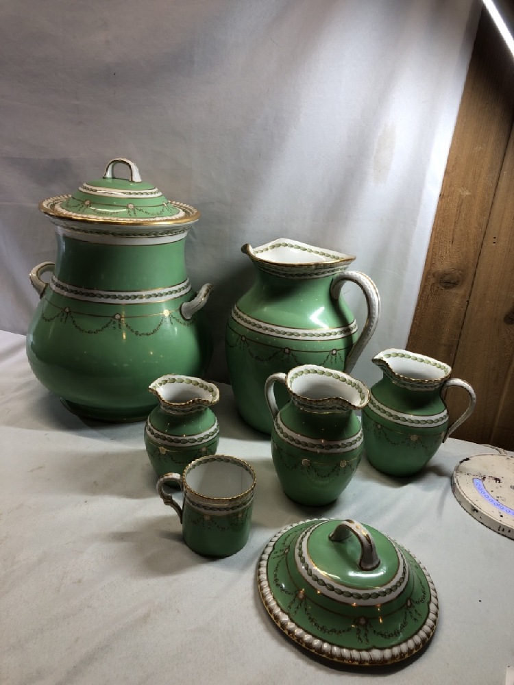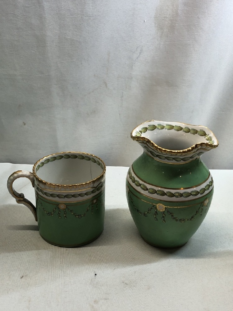 W.T. Copeland & Sons Porcelain Set Pitchers, Cup, Fruit Cooler ? And extra lid
