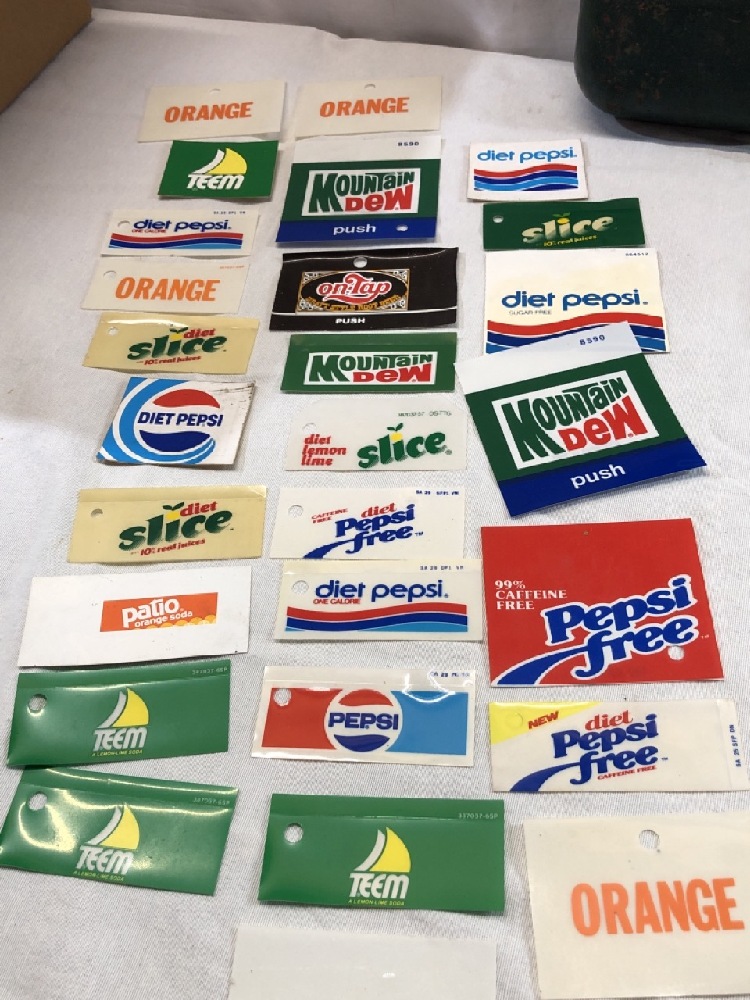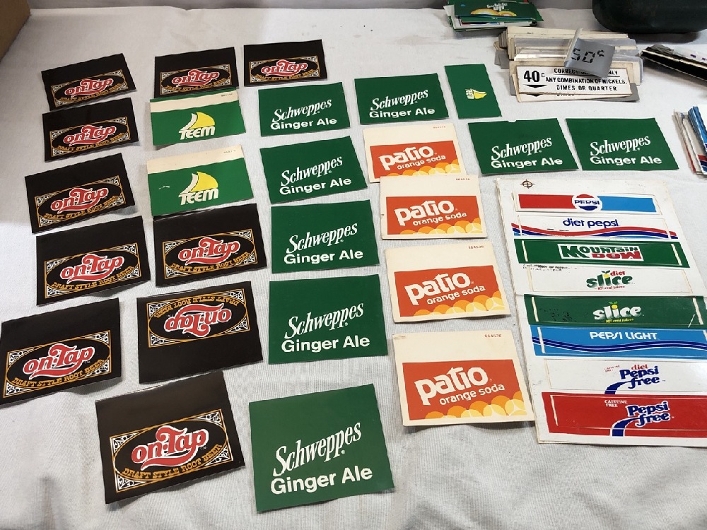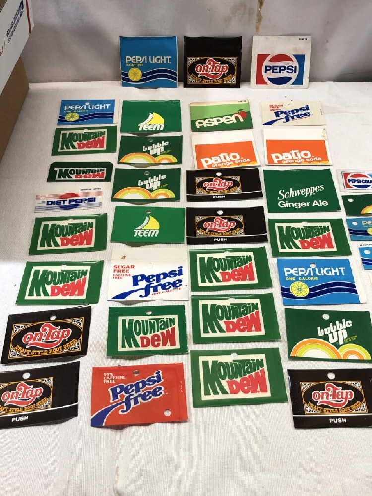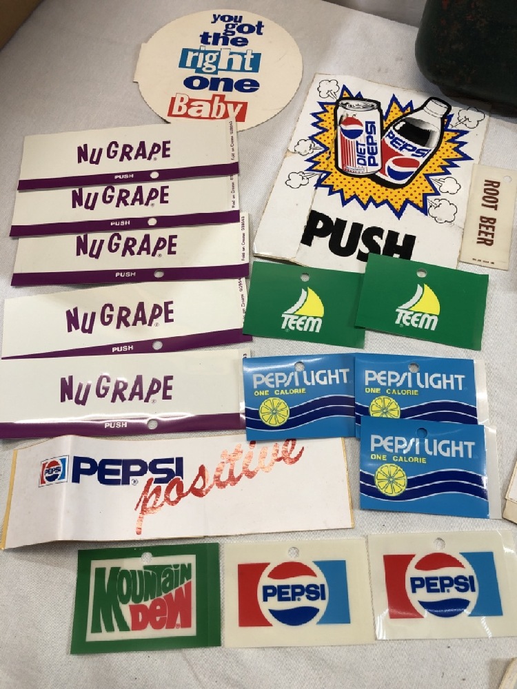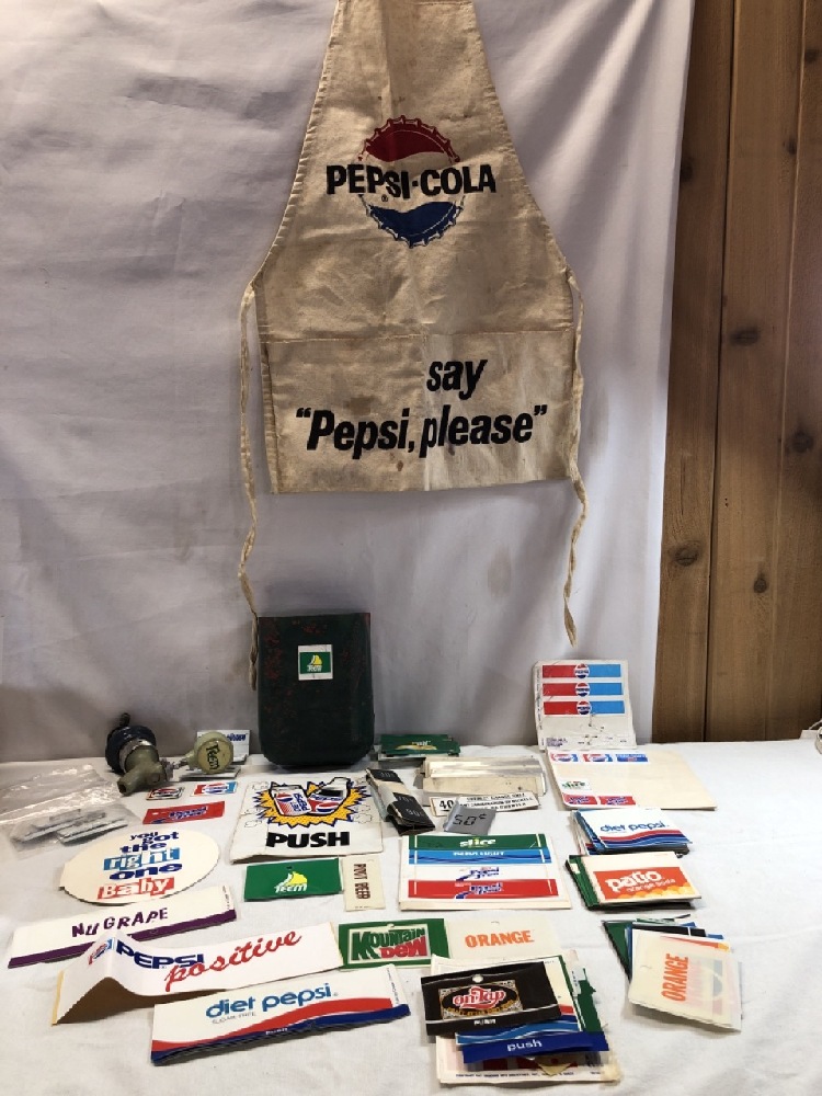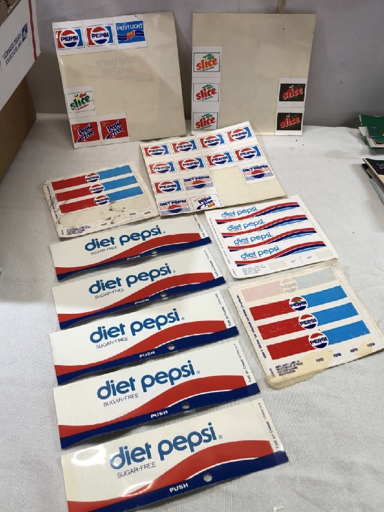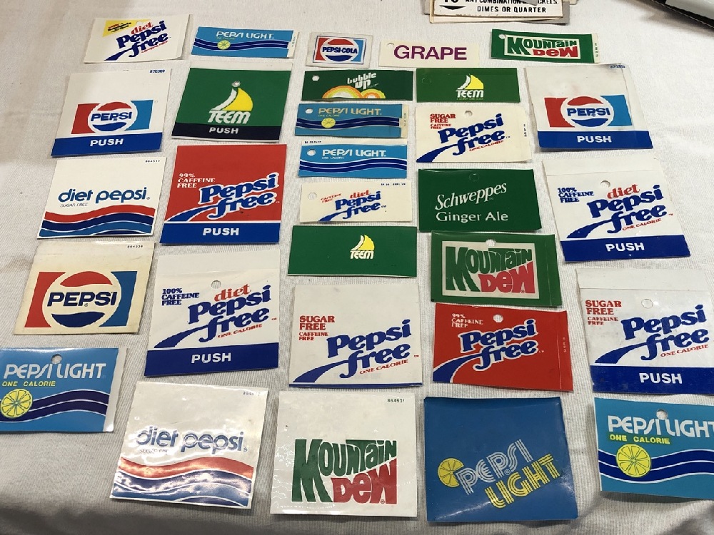 Vtg. Pepsi Advertising - Labels, Stickers, Soda Fountain Tap and more