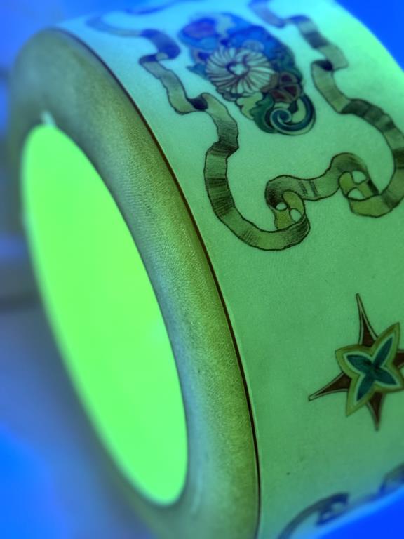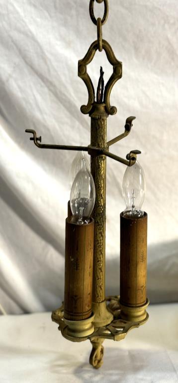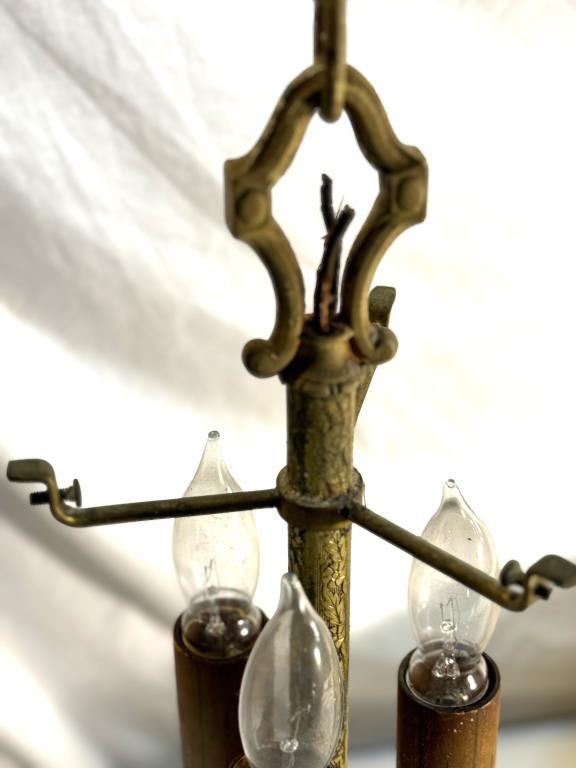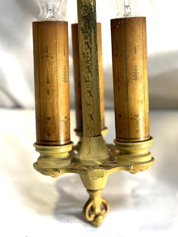 Art Deco Lightolier Chandelier W/ Painted Uranium Glass Globe- 23" L X Globe 9.5" Round
