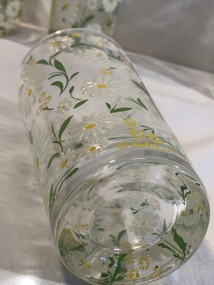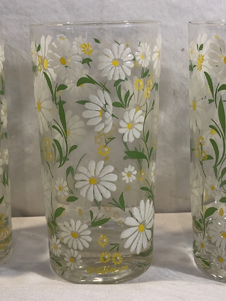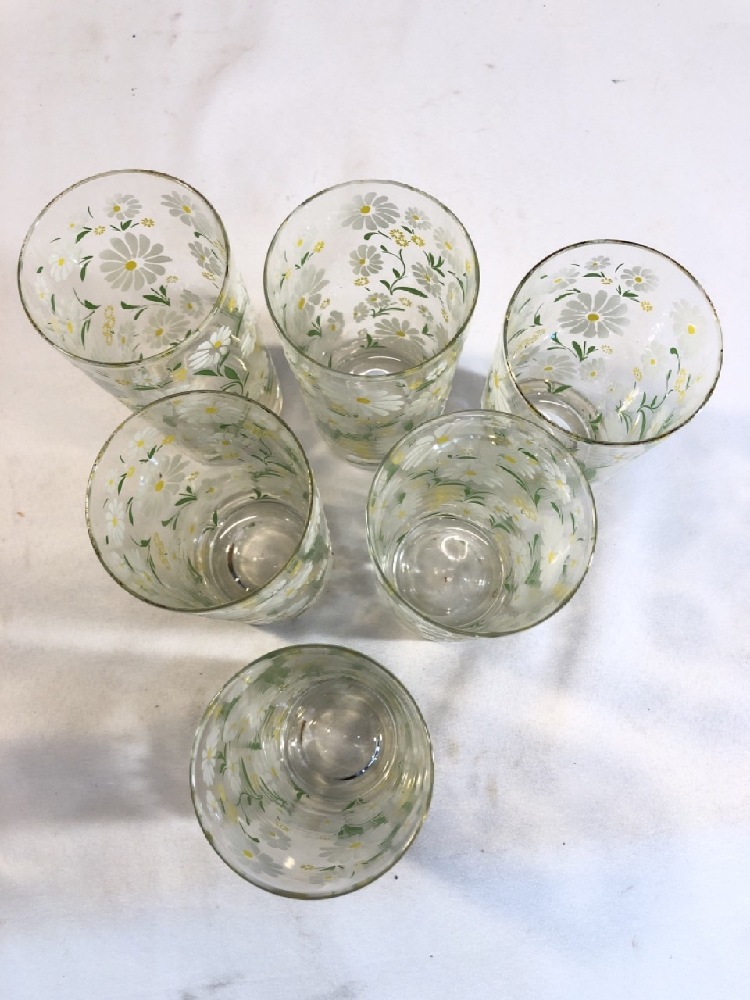 6 MCM Culver Daisy Drinking Glasses - Hand Painted White Daisy Pattern