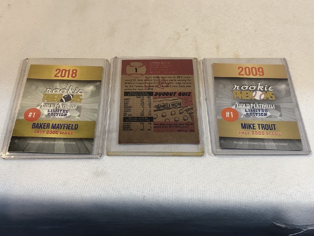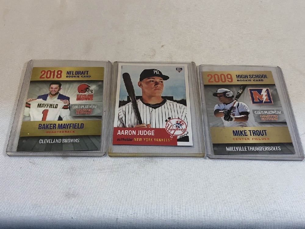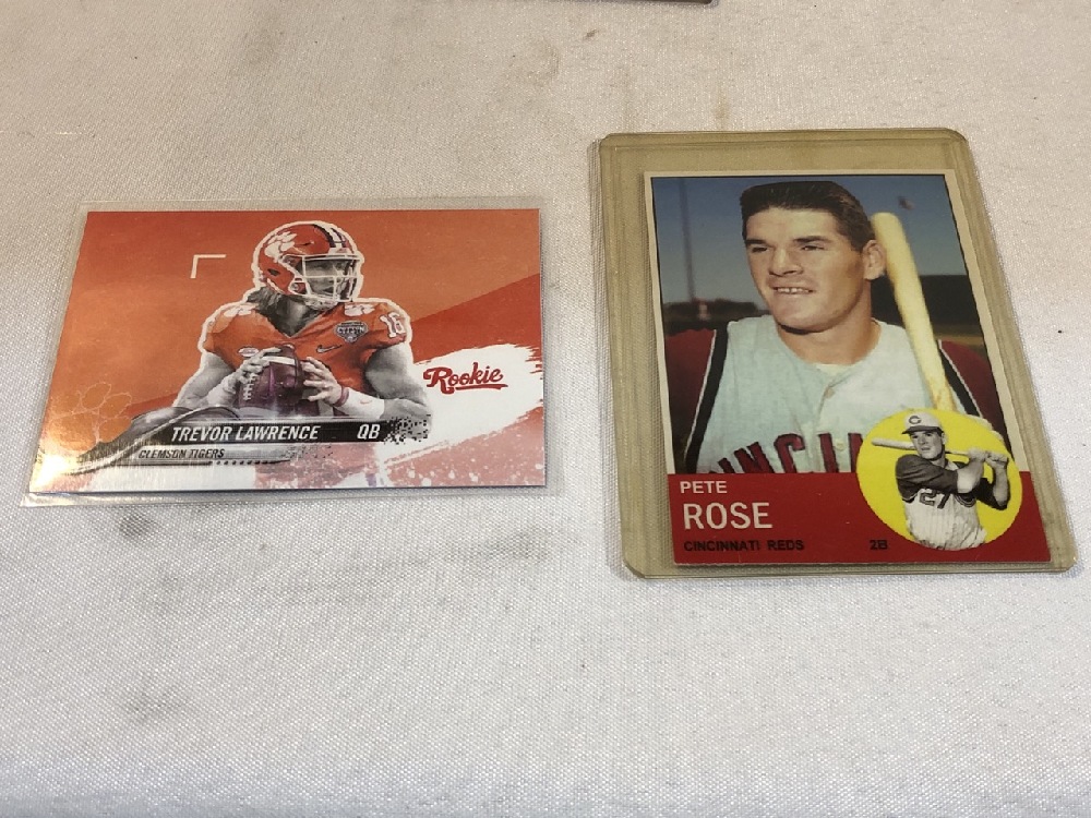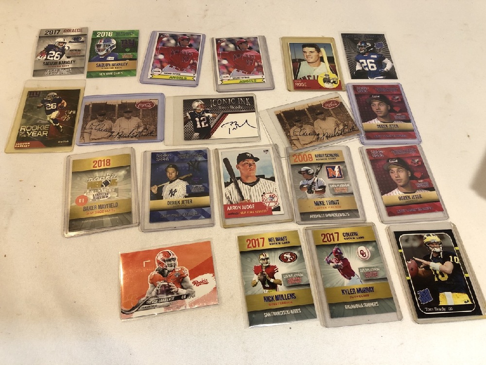 Sports Trading Cards including Tom Brady Patriots Rookie Card, Nick Mullens Rookie, Kyler Murray College Rookie, Trevor Lawrence Rookie, Derek Jeter Rookie, Aaron Judge, Mike Trout High School Rookie, Pete Rose, Shohei Ohtani , Saquon Barkley and Coca-Cola
