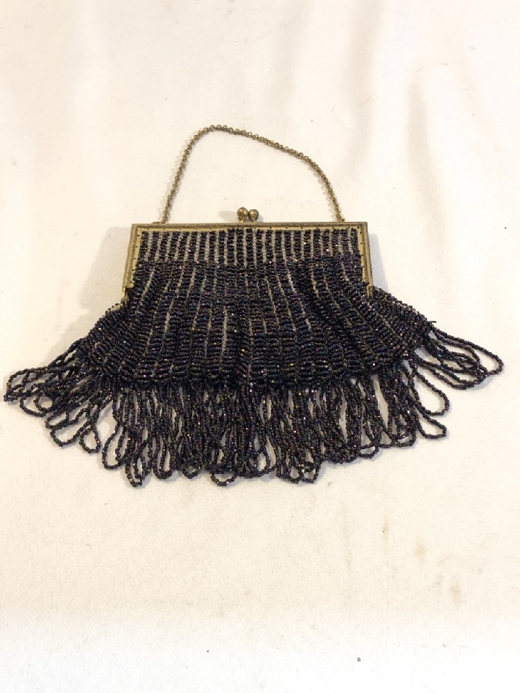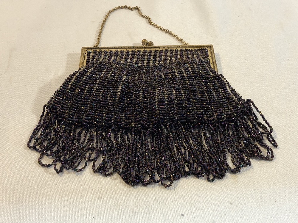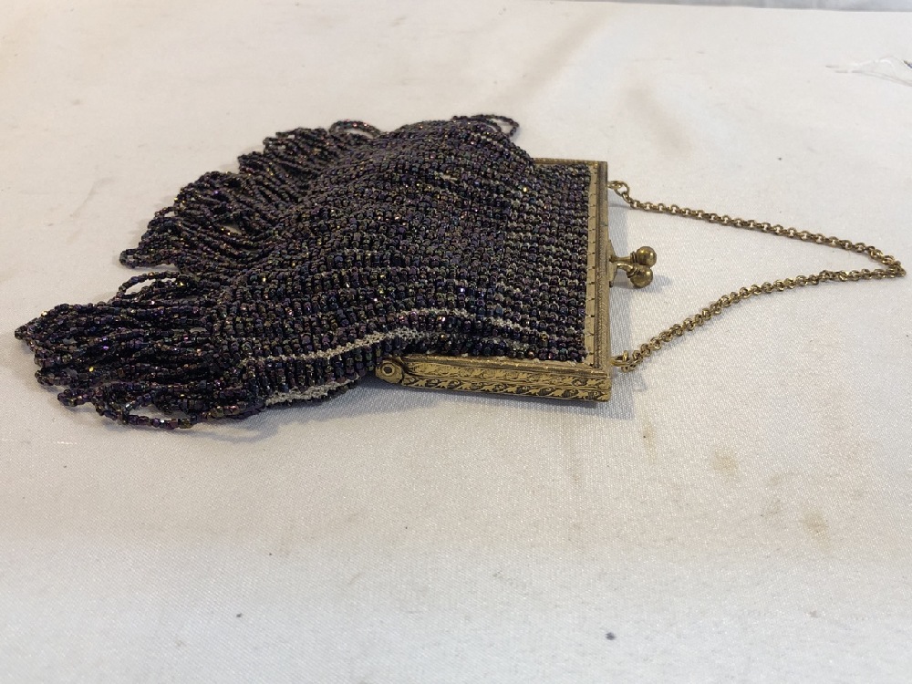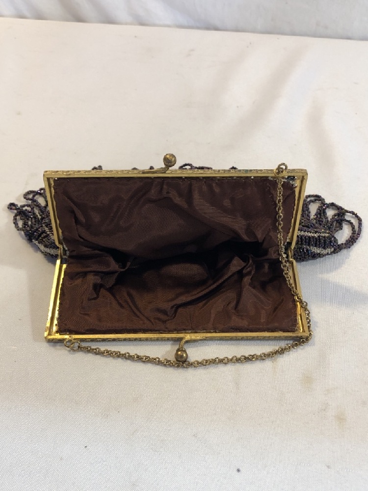 Antique Carnival Glass Beaded Purse- Brass Frame